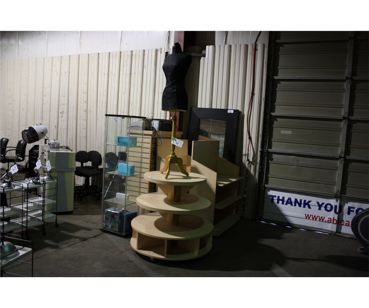 4 MOBILE PRODUCT DISPLAYS AND MANNEQUIN