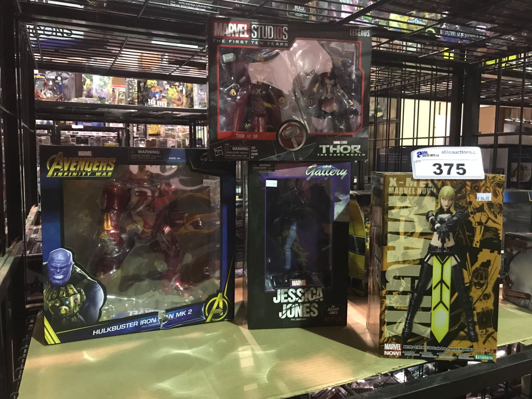 4 NEW IN BOX MARVEL FIGURES SUCH AS: THOR + SIF, MAGIK, JESSICA JONES, & HULKBUSTER IRON MAN MK 2
