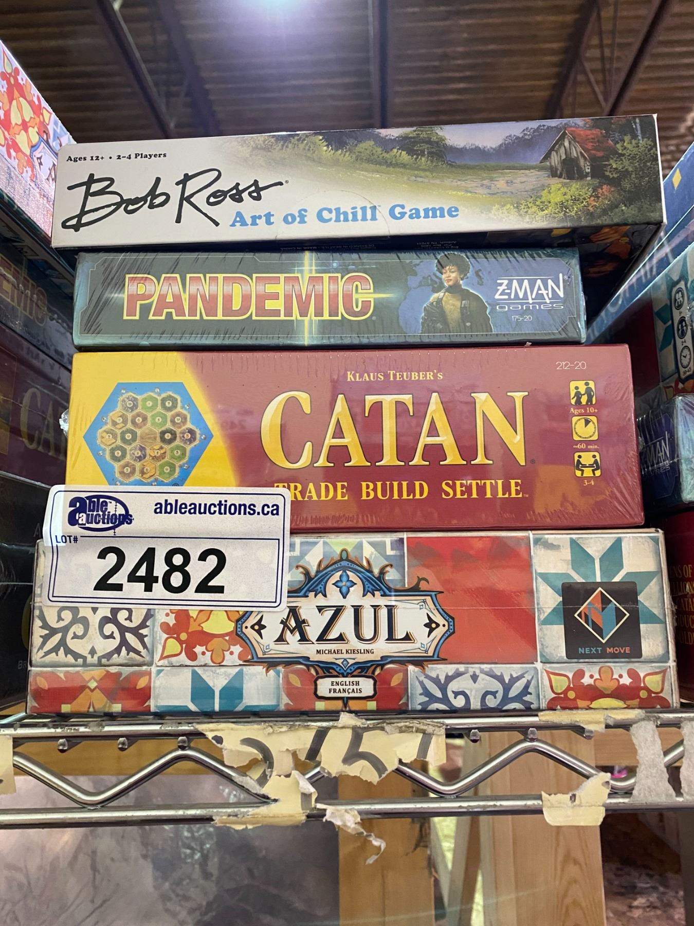4 NEW IN PACKAGING GAMES: BOB ROSS ART OF CHILL, PANDEMIC, SETTLERS OF CATAN, AZUL