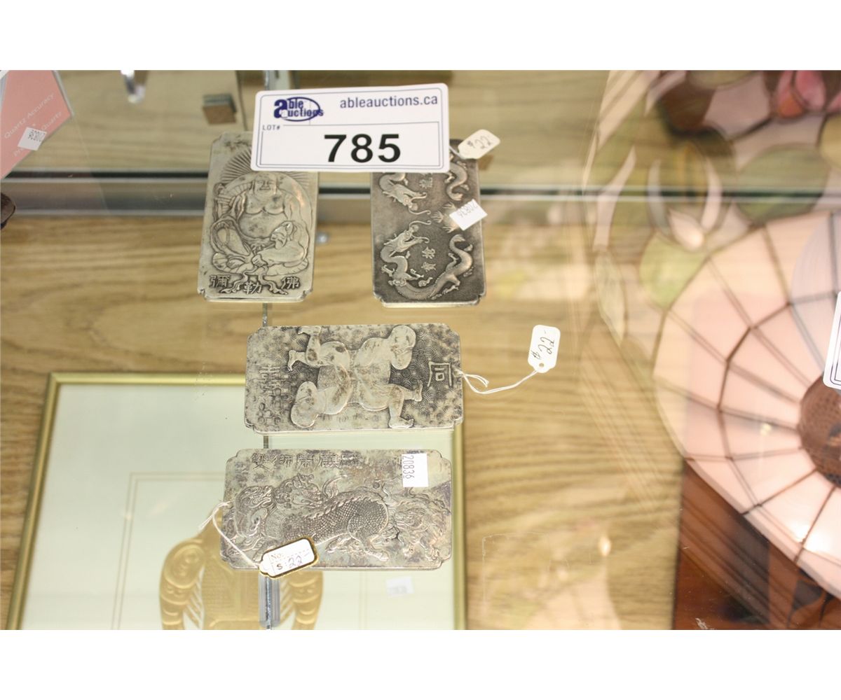 4 ORIENTAL SMALL METAL PLAQUES STAMPED ON BACK BY CRAFTSMAN