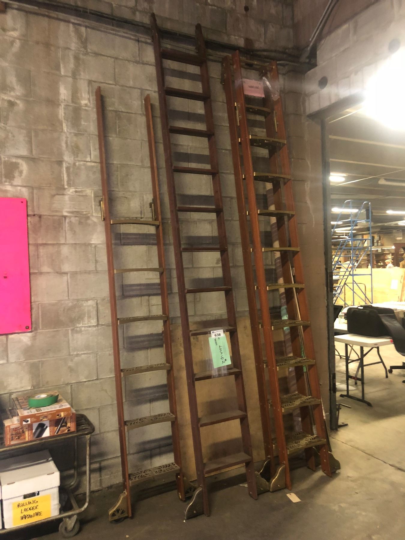 4 ORNATE ROLLING LIBRARY LADDERS WITH TRACKING & HARDWARE