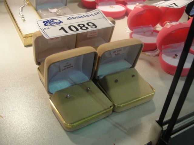 4 PAIRS OF 14K AND 10K GOLD LADIES EARRINGS WITH ASSORTED GEMSTONES; RUBY, AQUAMARINE, ETC