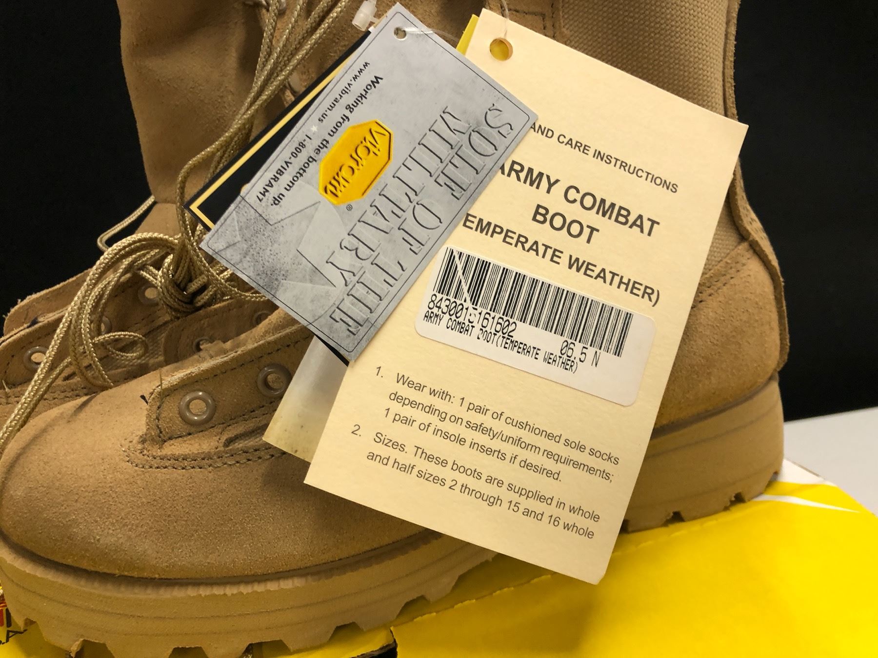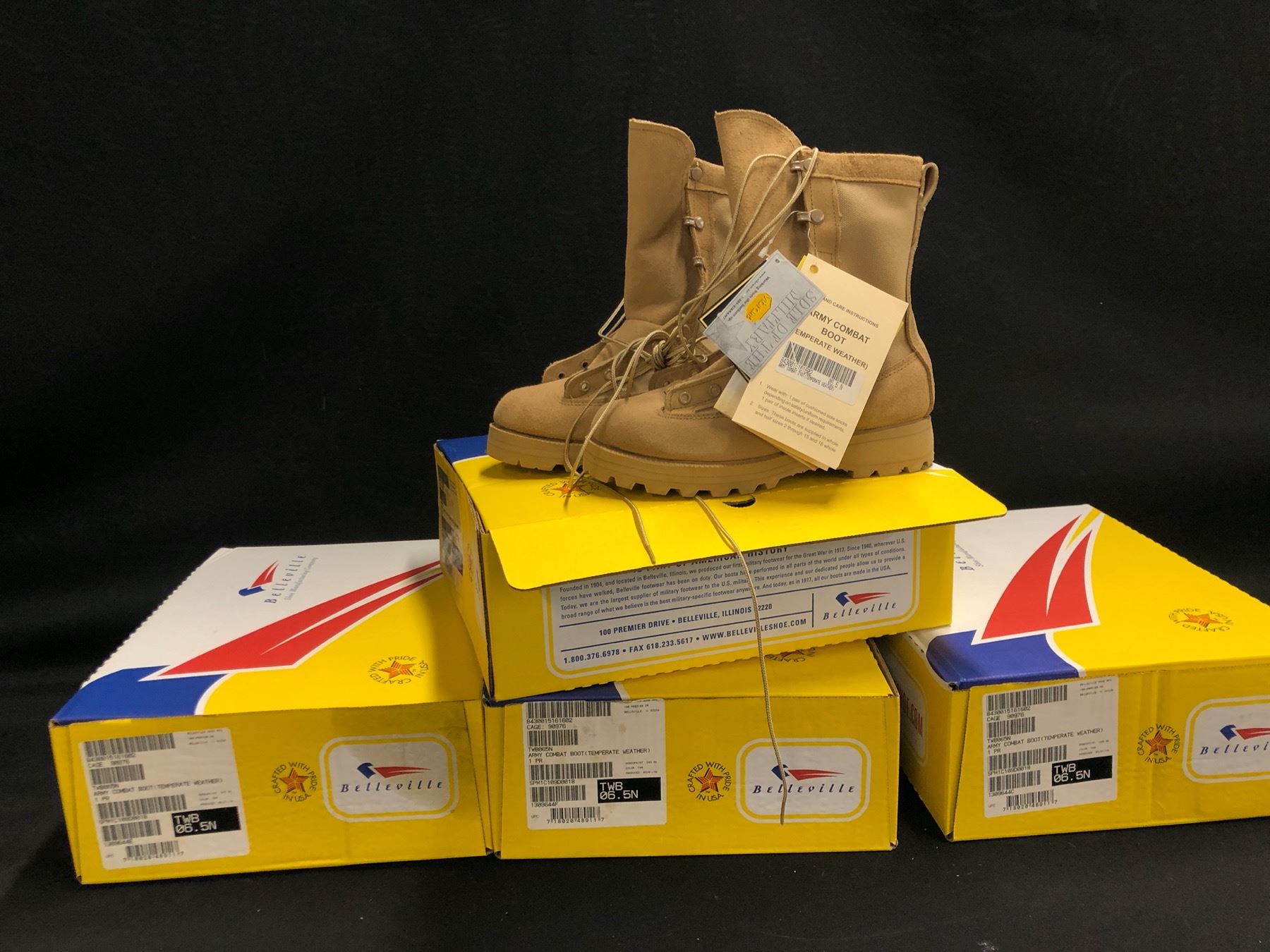 4 PAIRS OF BELLEVILLE ARMY COMBAT BOOTS, SIZE 6.5, TAN