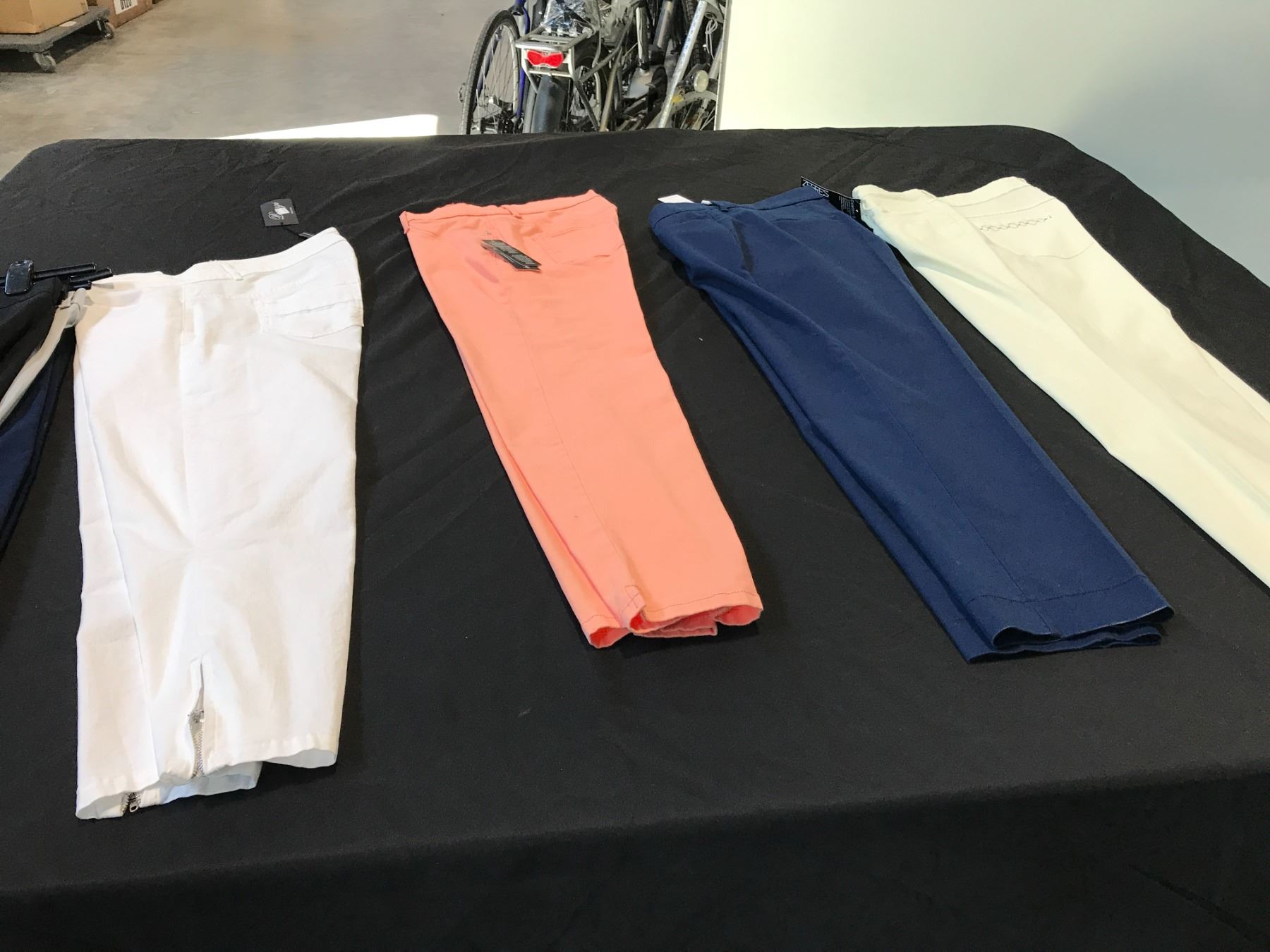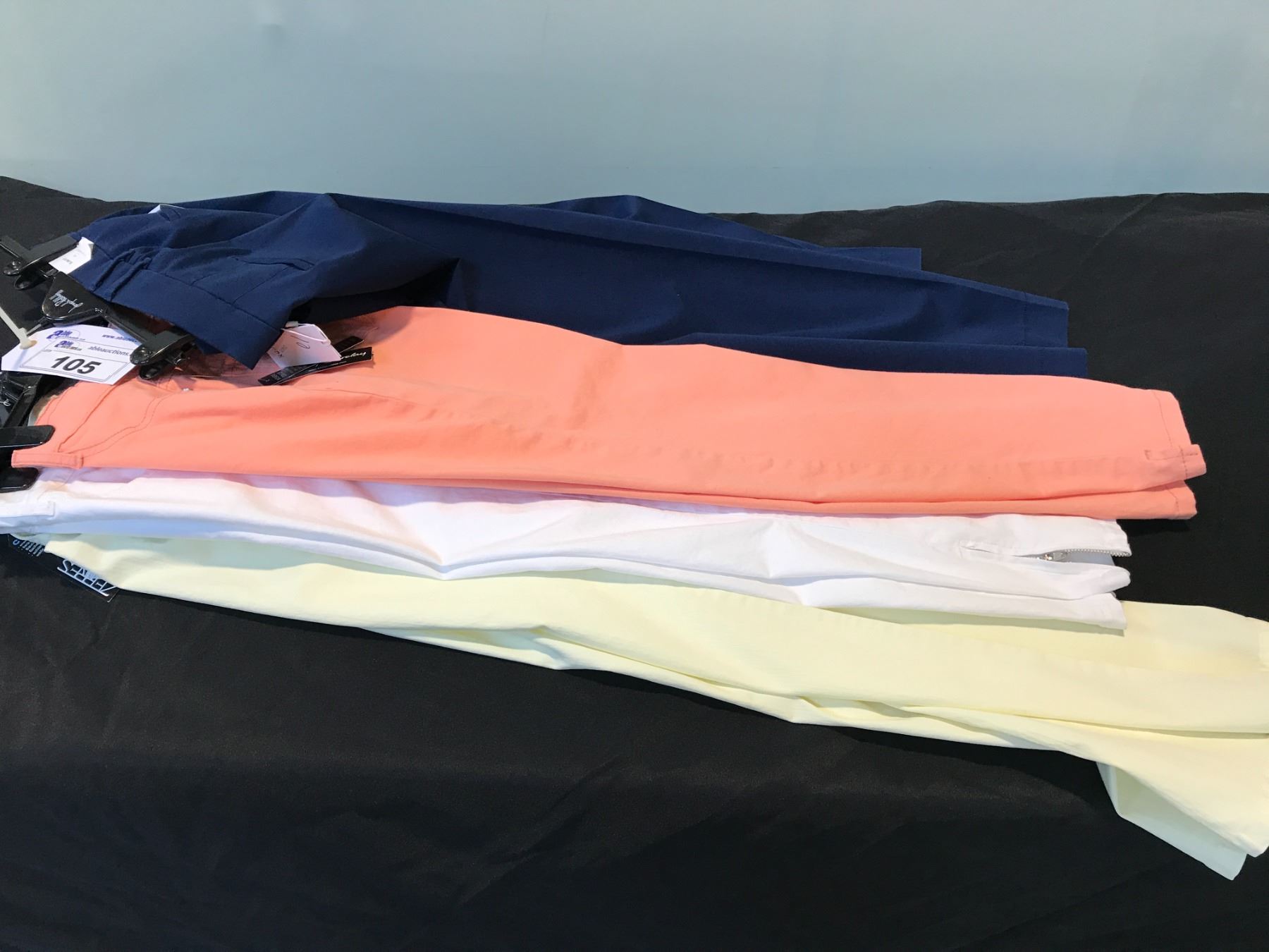4 PAIRS OF LADIES DESIGNER PANTS BY BRAX, BETTY BARCLAY, PERRUZI AND ZERREZ SIZE 9/10