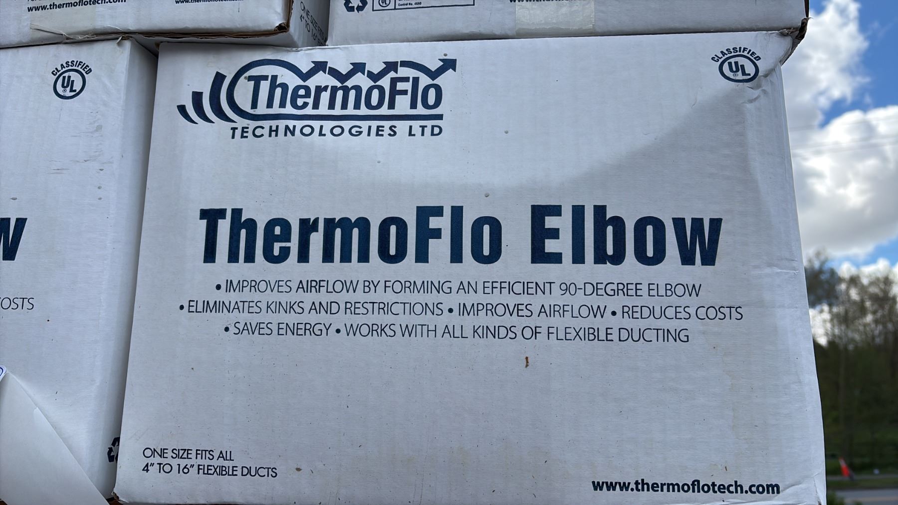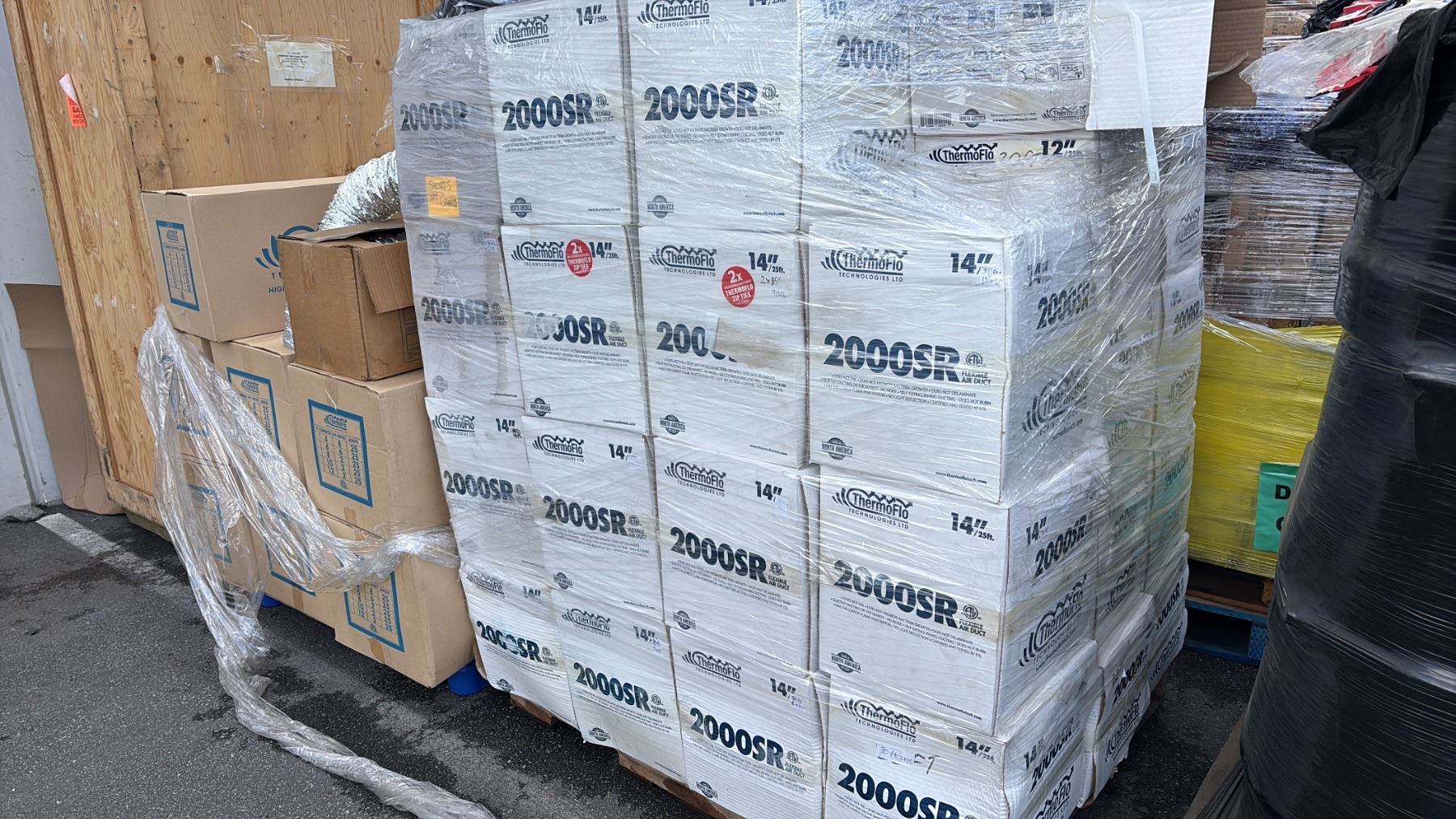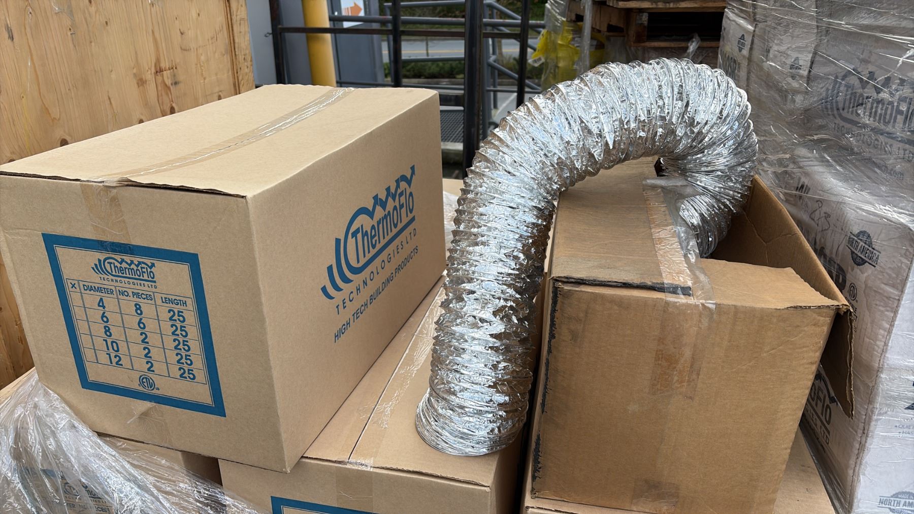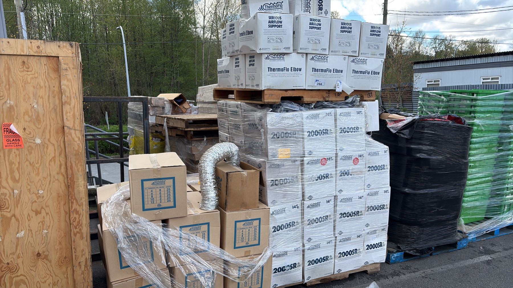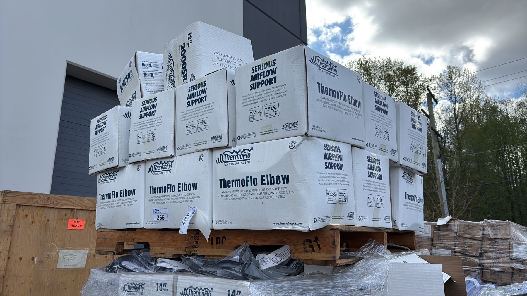 4 PALLETS OF THERMO FLOW ASSORTED DUCTS AND ELBOWS