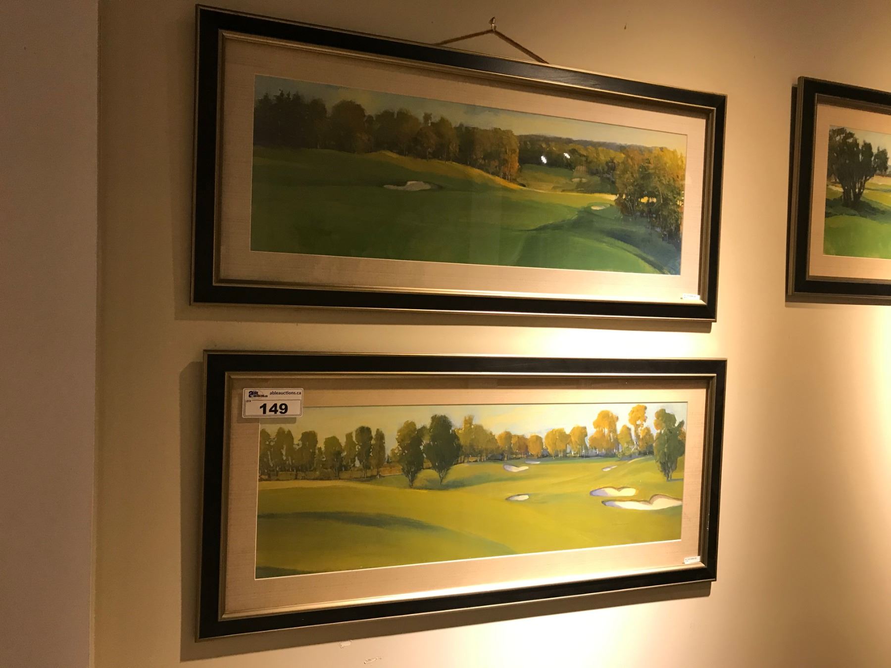 4 PC GOLD & BLACK FRAMED GOLF ARTWORK 19 X 43 INCHES