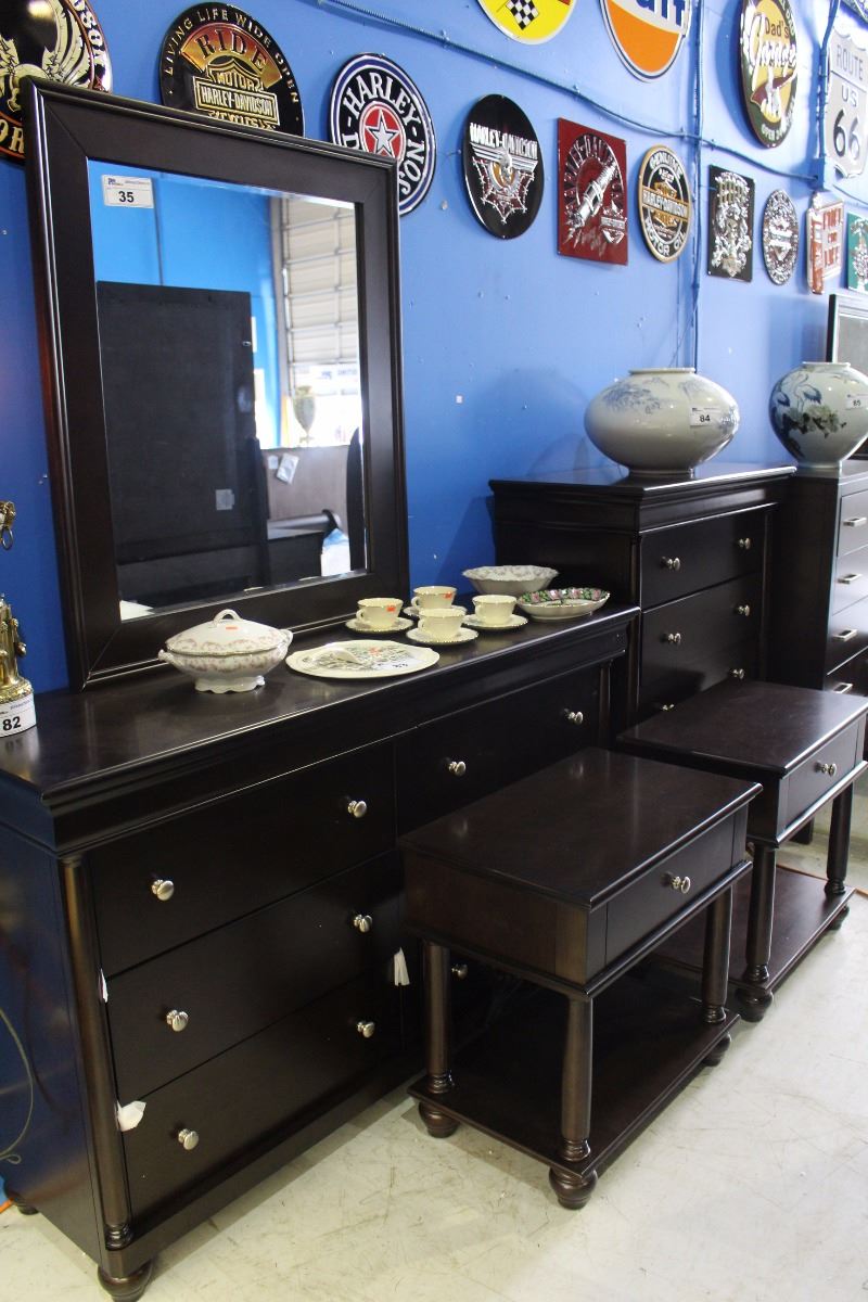 4 PIECE BEDROOM SUITE INCLUDING DRESSER WITH MIRROR, HIGHBOY AND 2 NIGHTSTANDS