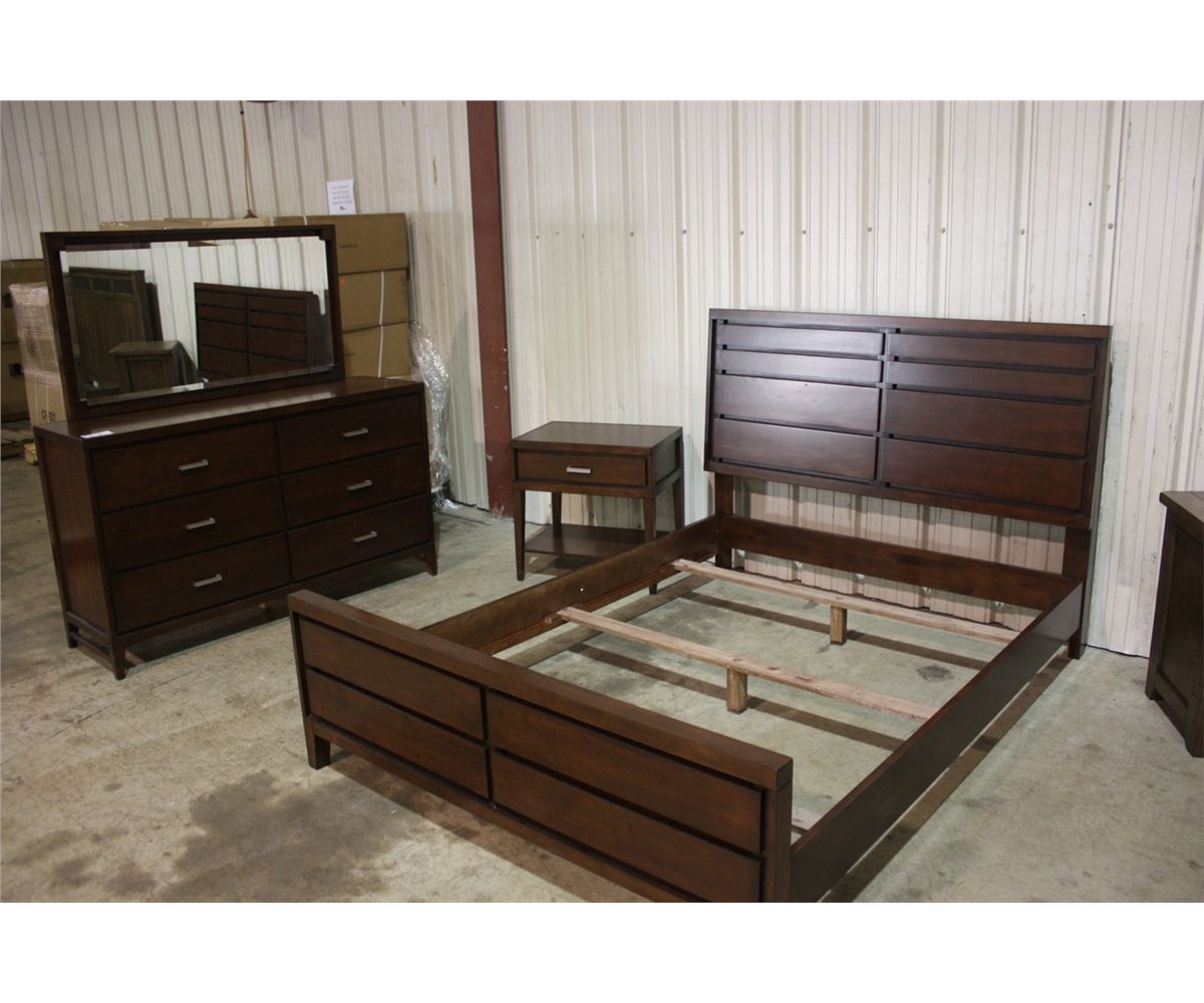 4 PIECE MAHOGANY QUEENSIZE BEDROOM SUITE WITH HEADBOARD , FOOTBOARD NITE STAND, 6 DR DRESSOR, MIRROR