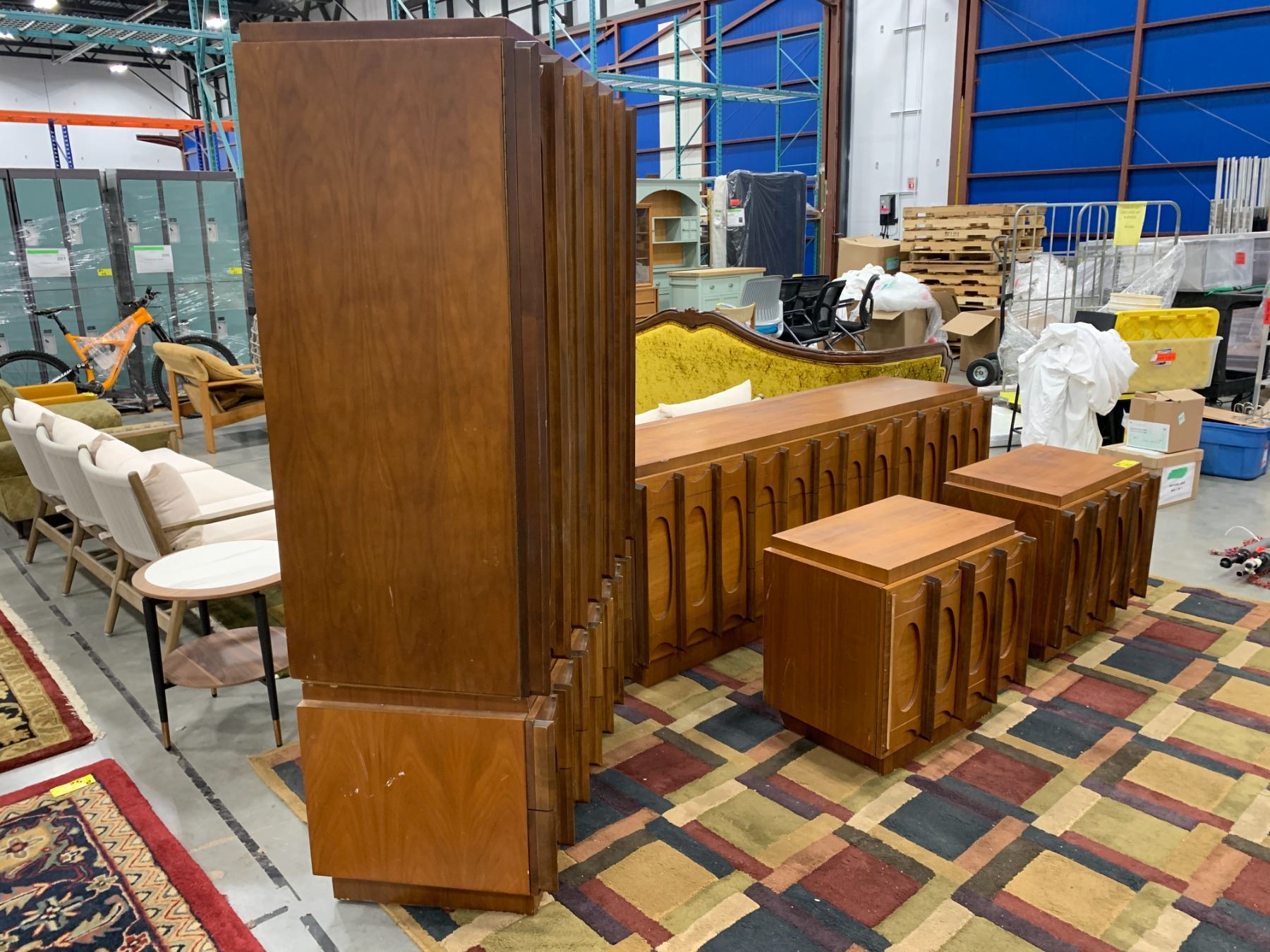 4 PIECE VINTAGE BEDROOM SET; WARDROBE (2 PIECE 40 X 22 X 71") DRESSER (79 X 20 X 31") AND 2 NIGHTSTANDS (26 X 17 X 24")