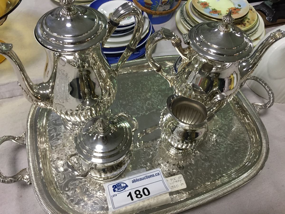4 PIECES SILVER PLATE TEA SET WITH TRAY