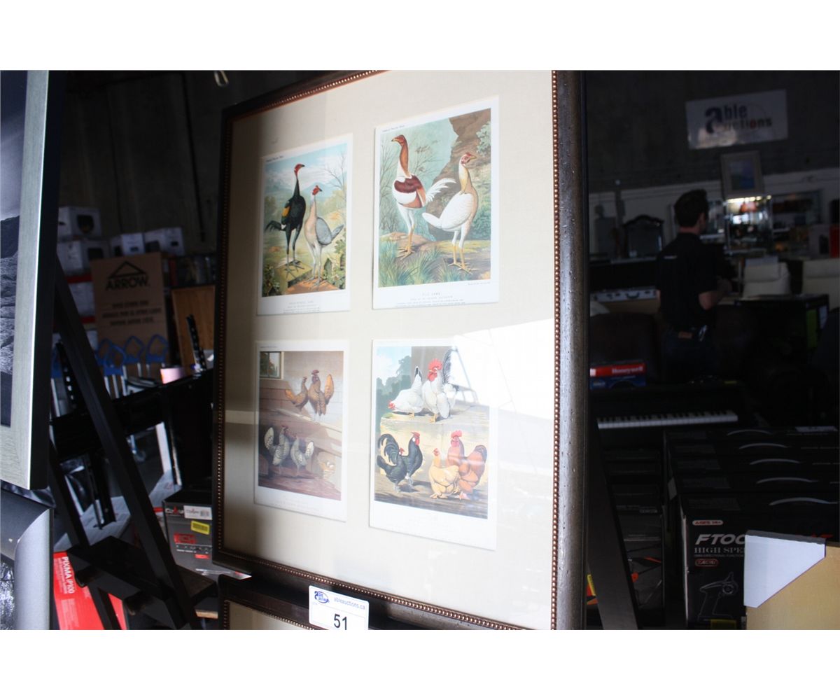 4 POULTRY BOOK CARDS FRAMED ARTWORK