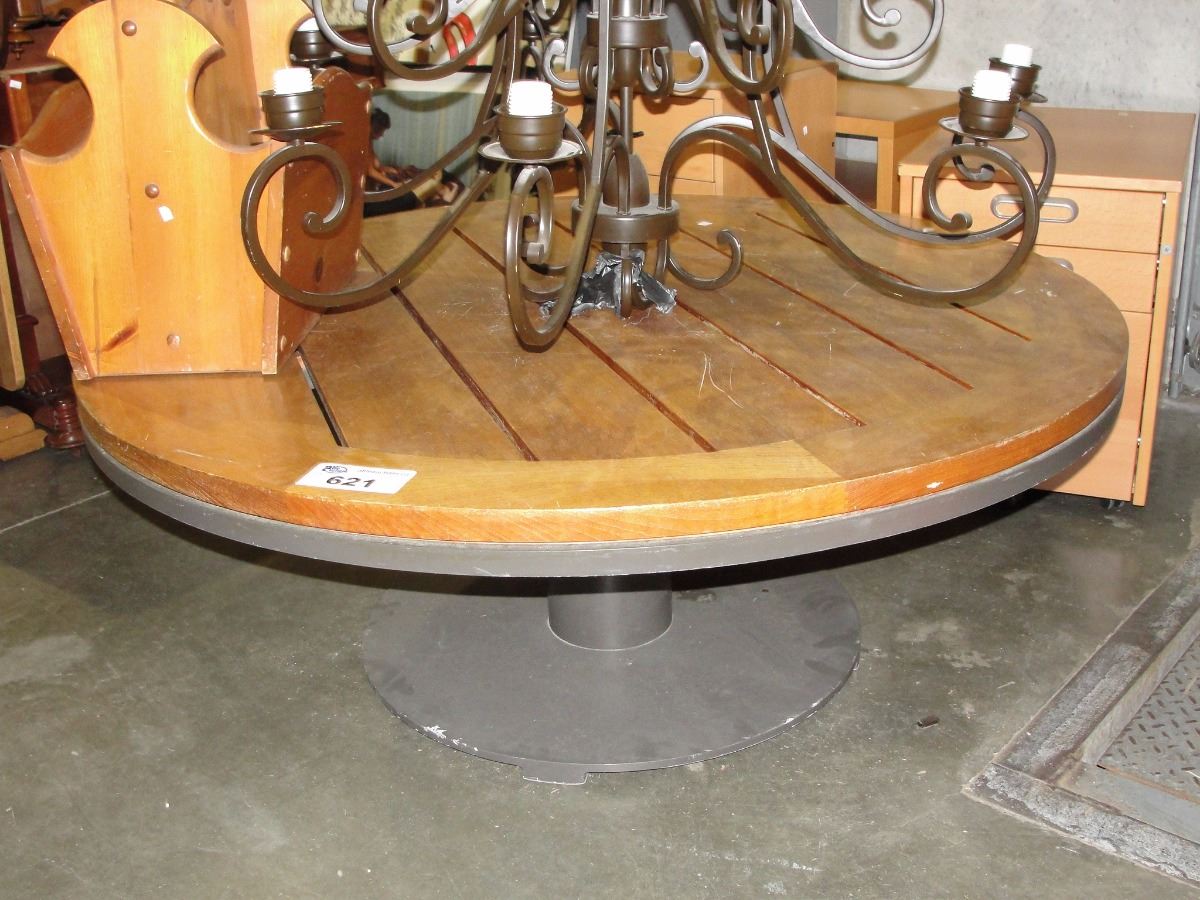 4' ROUND WOOD AND METAL BASE OUTDOOR COFFEE TABLE