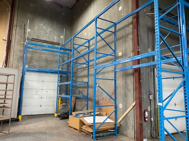 4 SECTIONS OF 16FT H X 42INCH W WAREHOUSE PALLET RACKING - DECKING NOT INCLUDED WITH 9FT & 8FT CROSS BEAMS