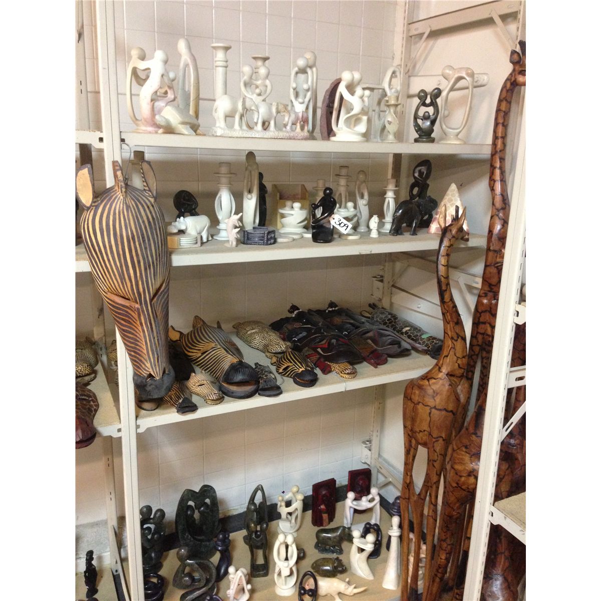 4 SHELVES OF ASSORTED AFRICAN COLLECTABLES, HUNDREDS OF DOLLARS IN RETAIL VALUE IN EACH LOT