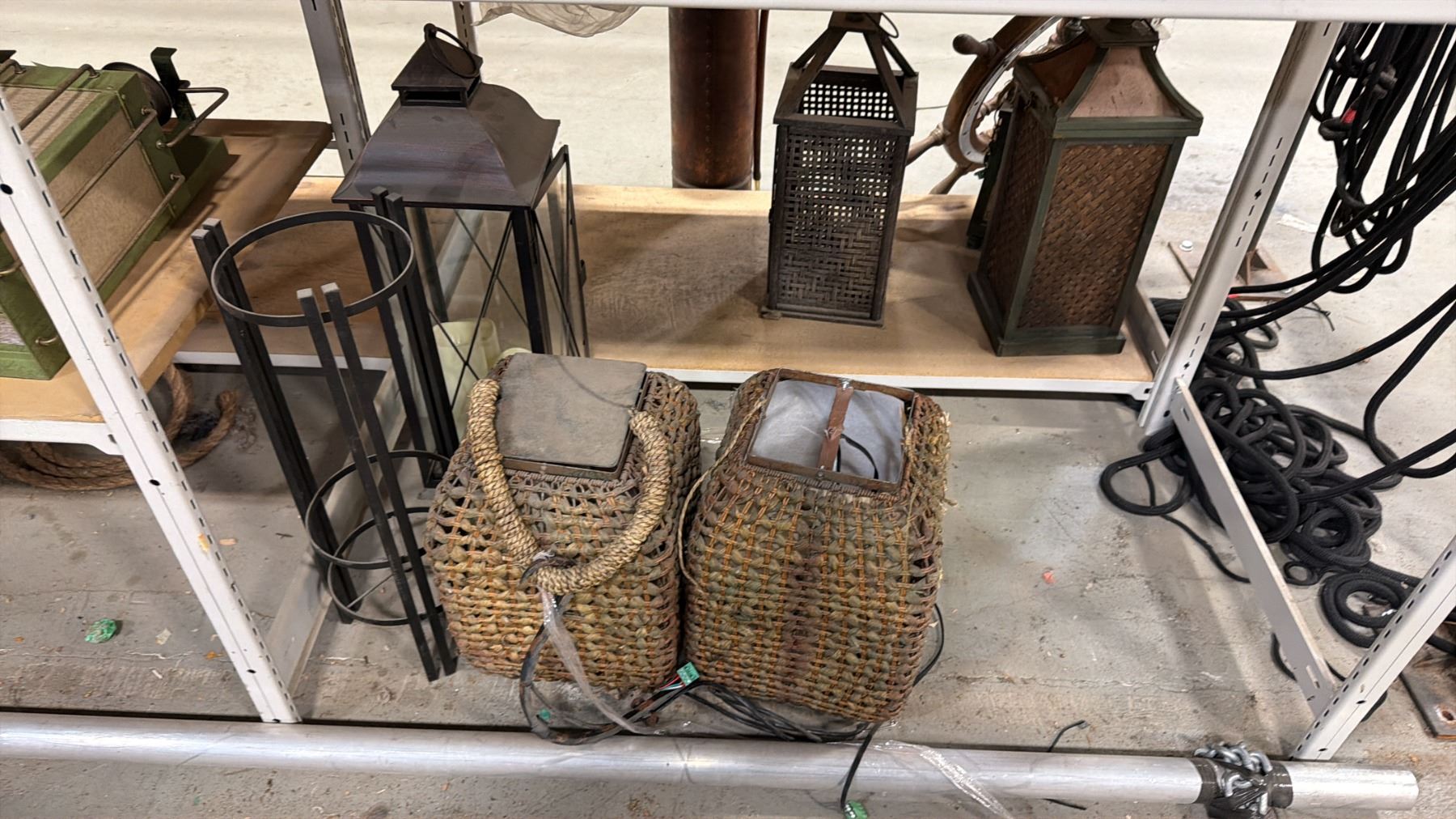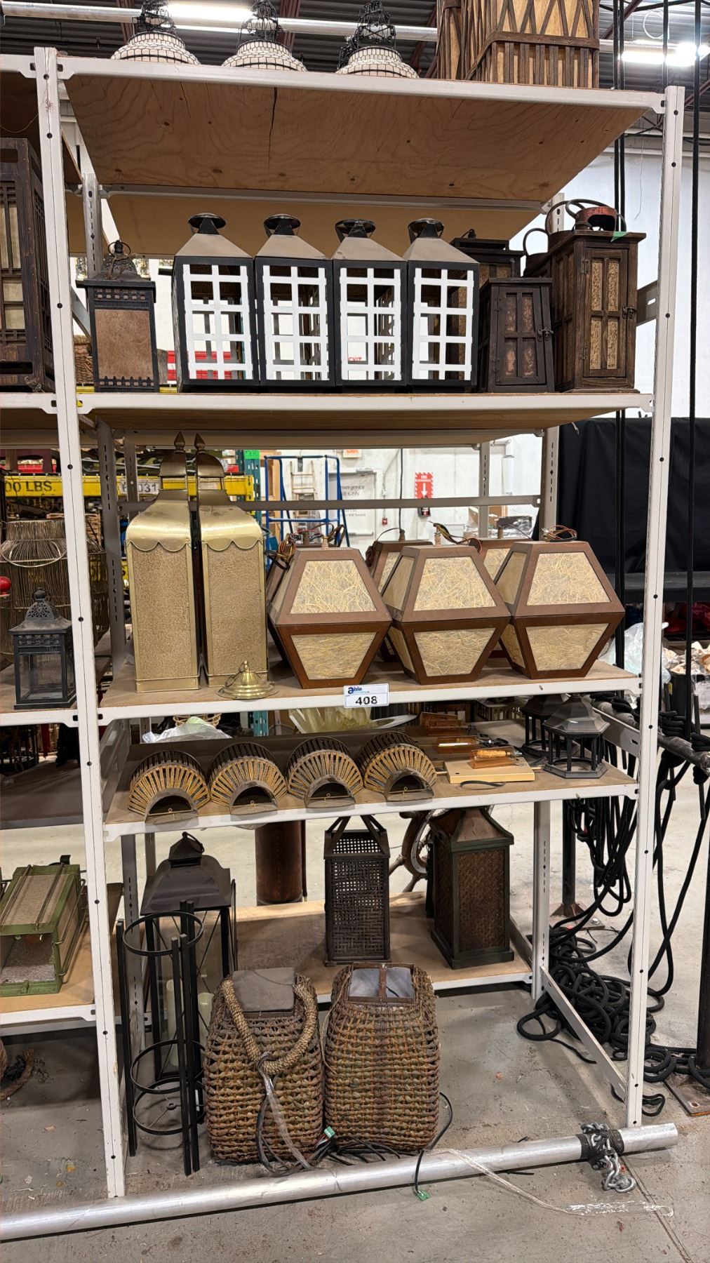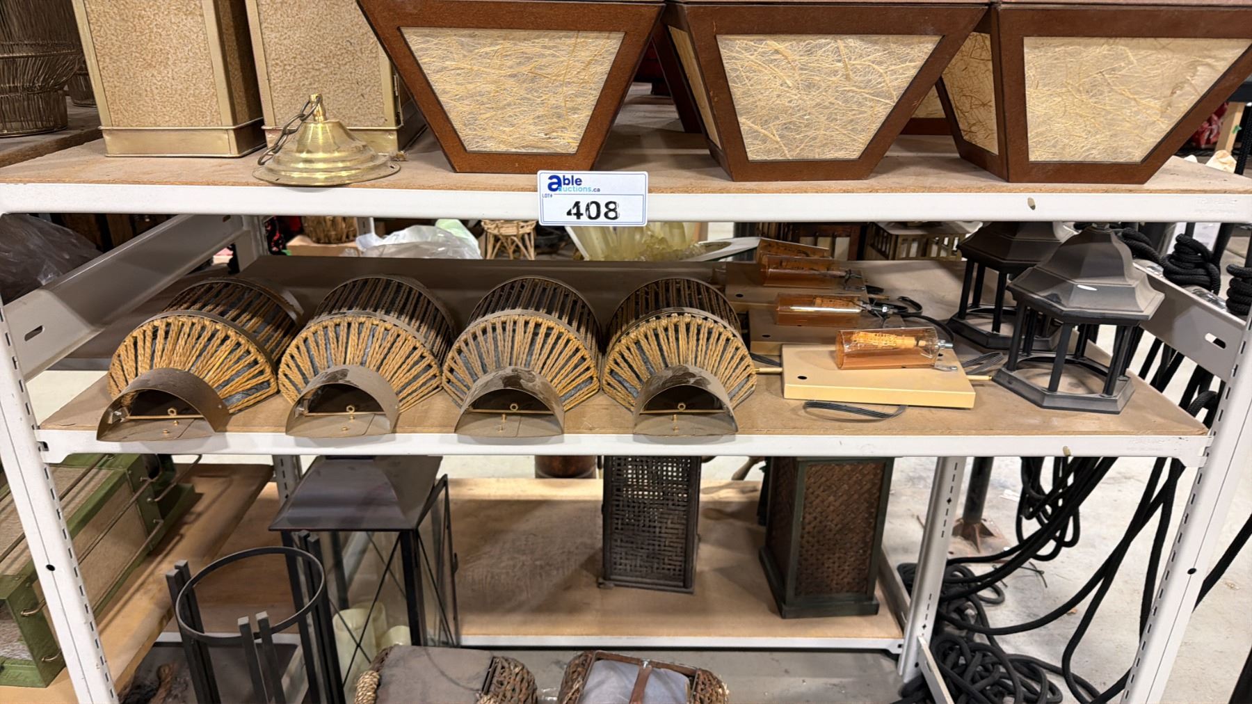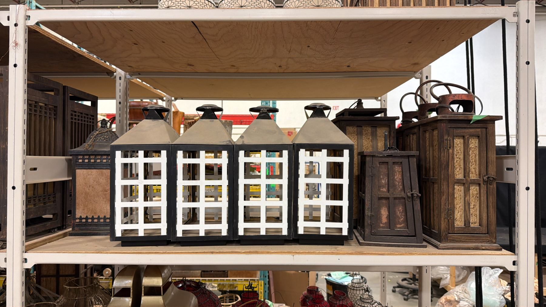 4 SHELVES OF ASSORTED ASIAN LANTERNS, LIGHTS, CANDLE BOXES & MORE