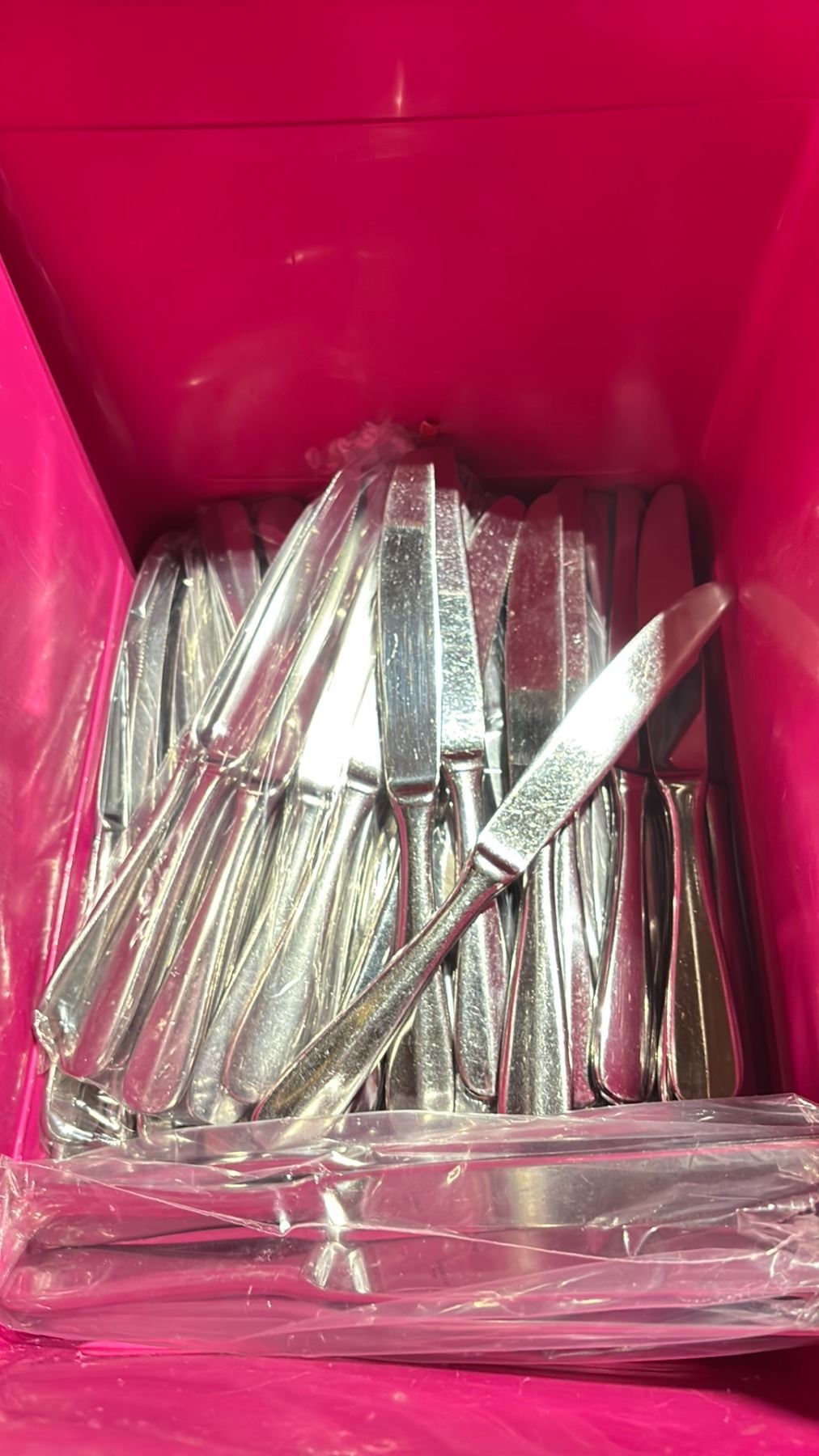 4 SMALL FOLD TOP BINS OF COMMERCIAL RESTAURANT STAINLESS STEEL BUTTER KNIVES *BINS INCLUDED*