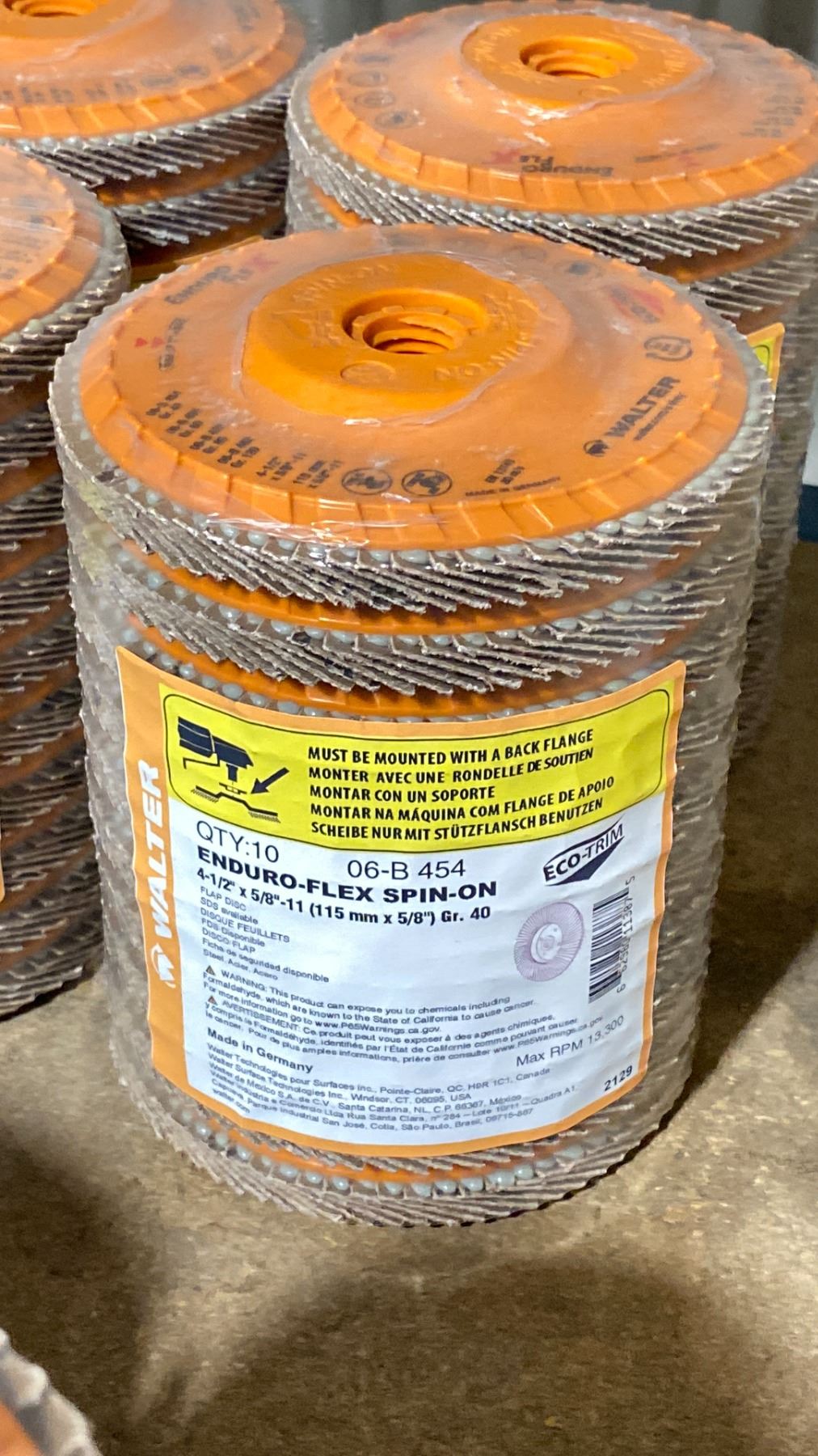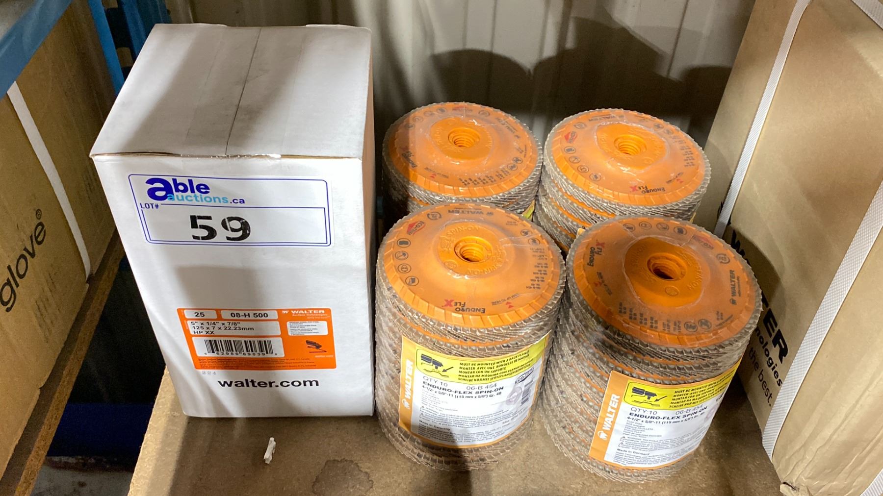 4 STACKS OF WALTER ENDURO-FLEX SPIN-ON DISCS & WALTER 5" X 1/4" X 7/8" GRINDING WHEELS *IN BOX*