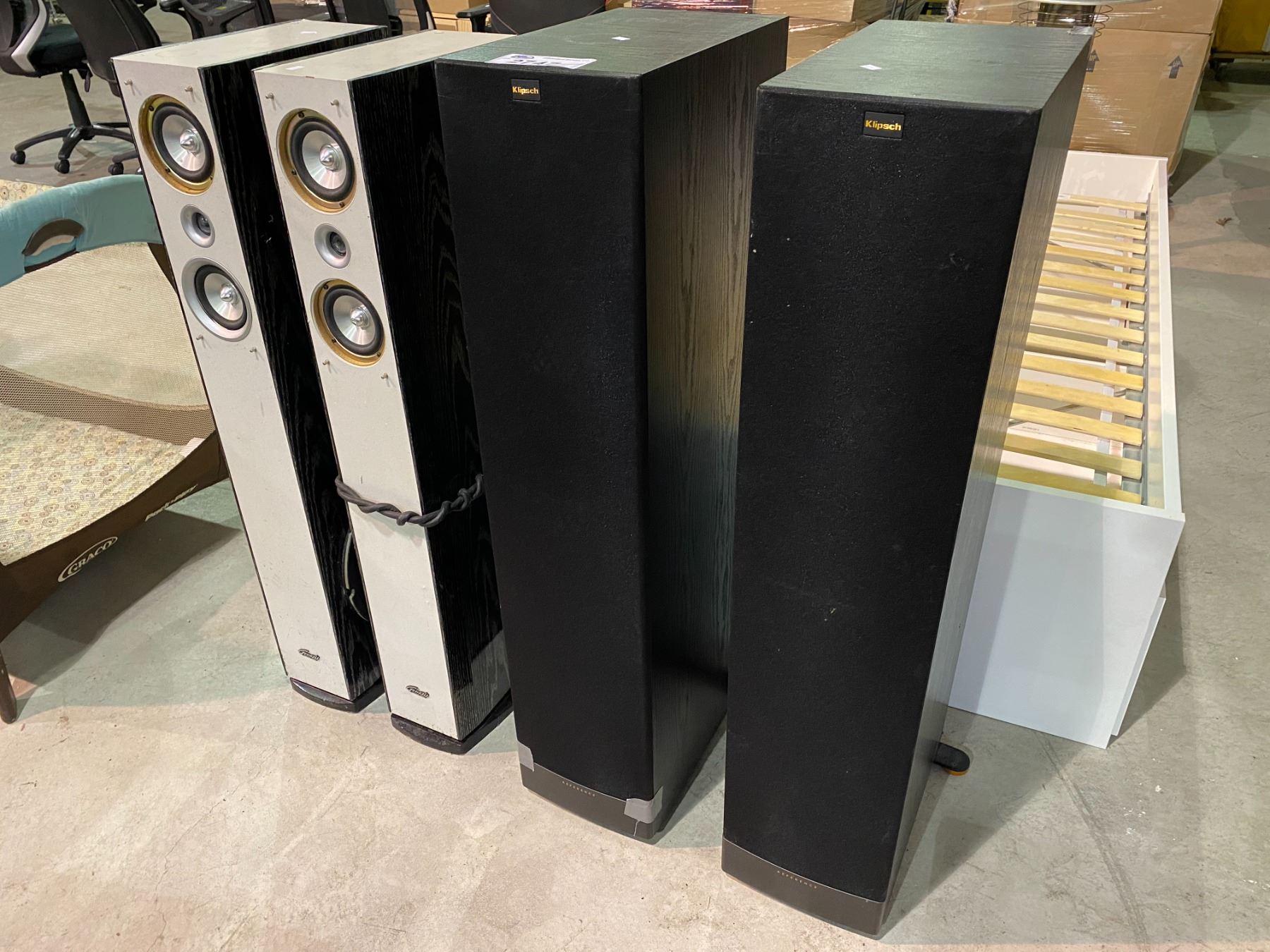 4 STANDING SPEAKERS (2 KLIPSCH, 2 GENESIS MEDIA LABS)