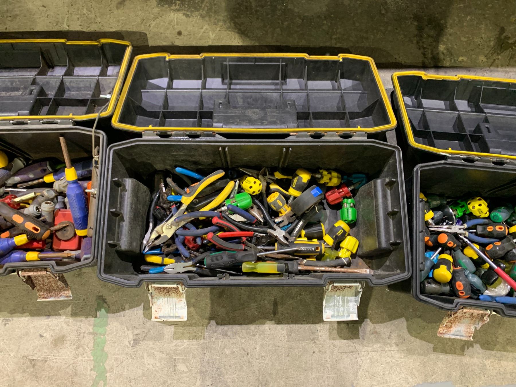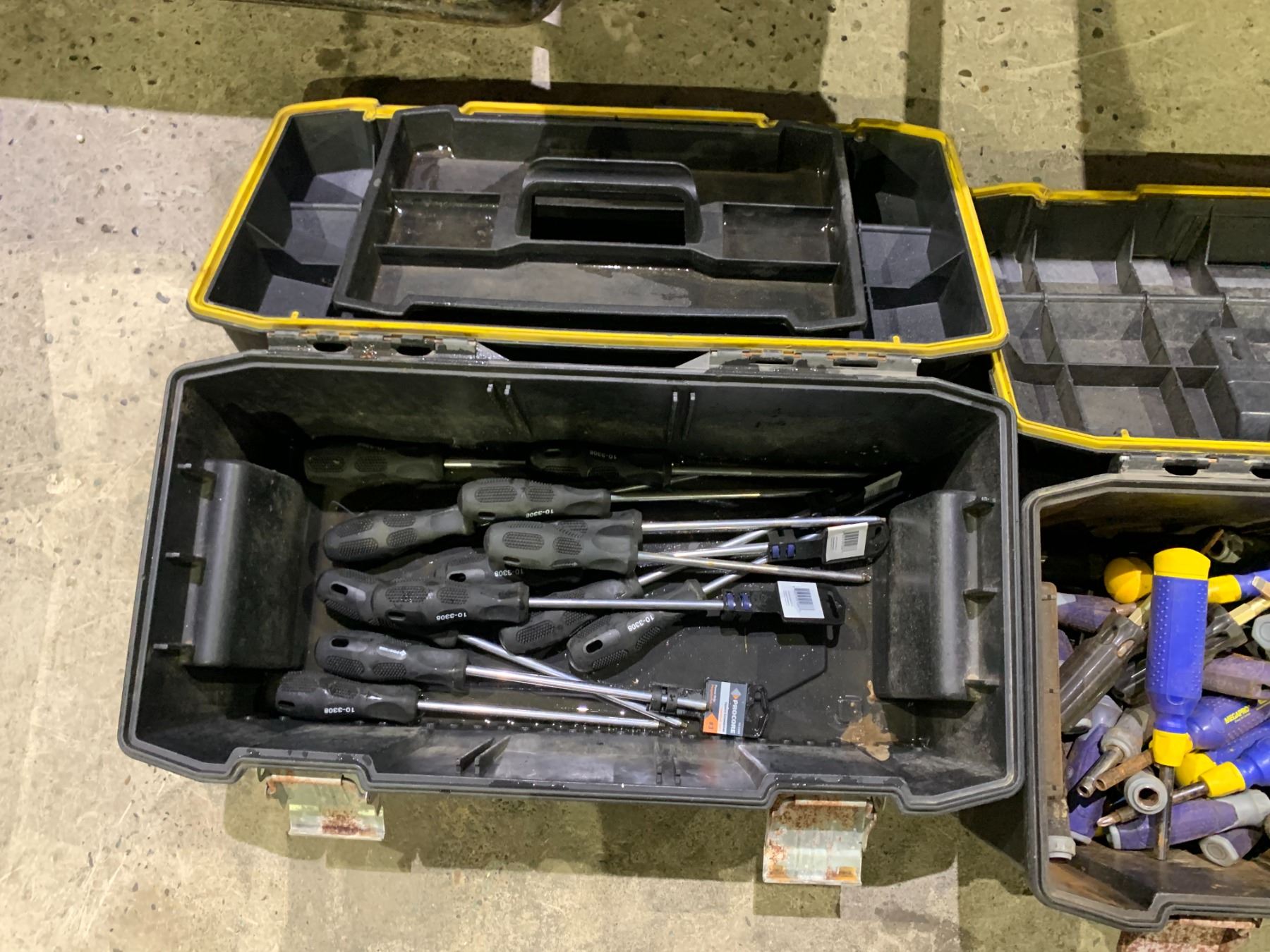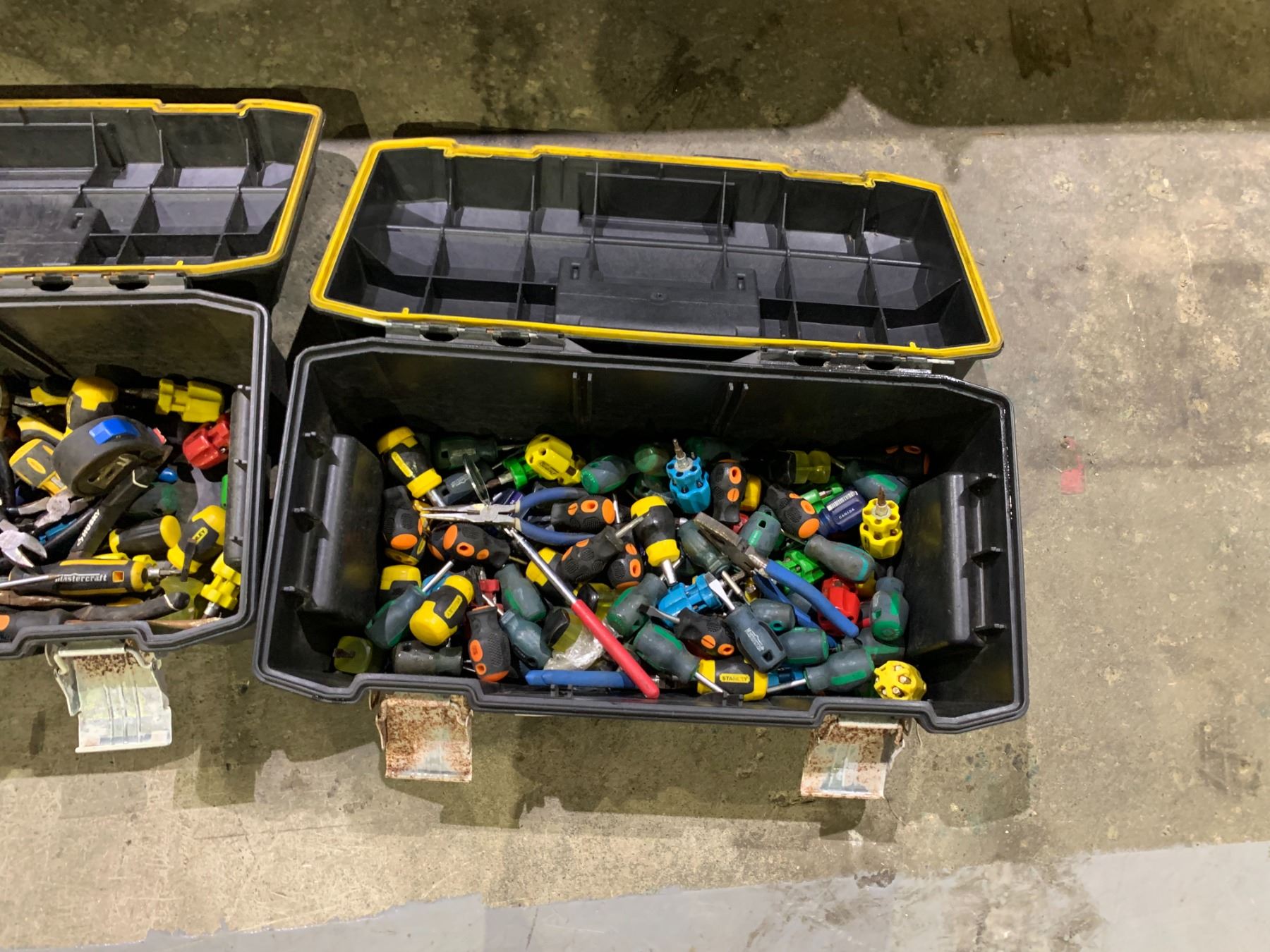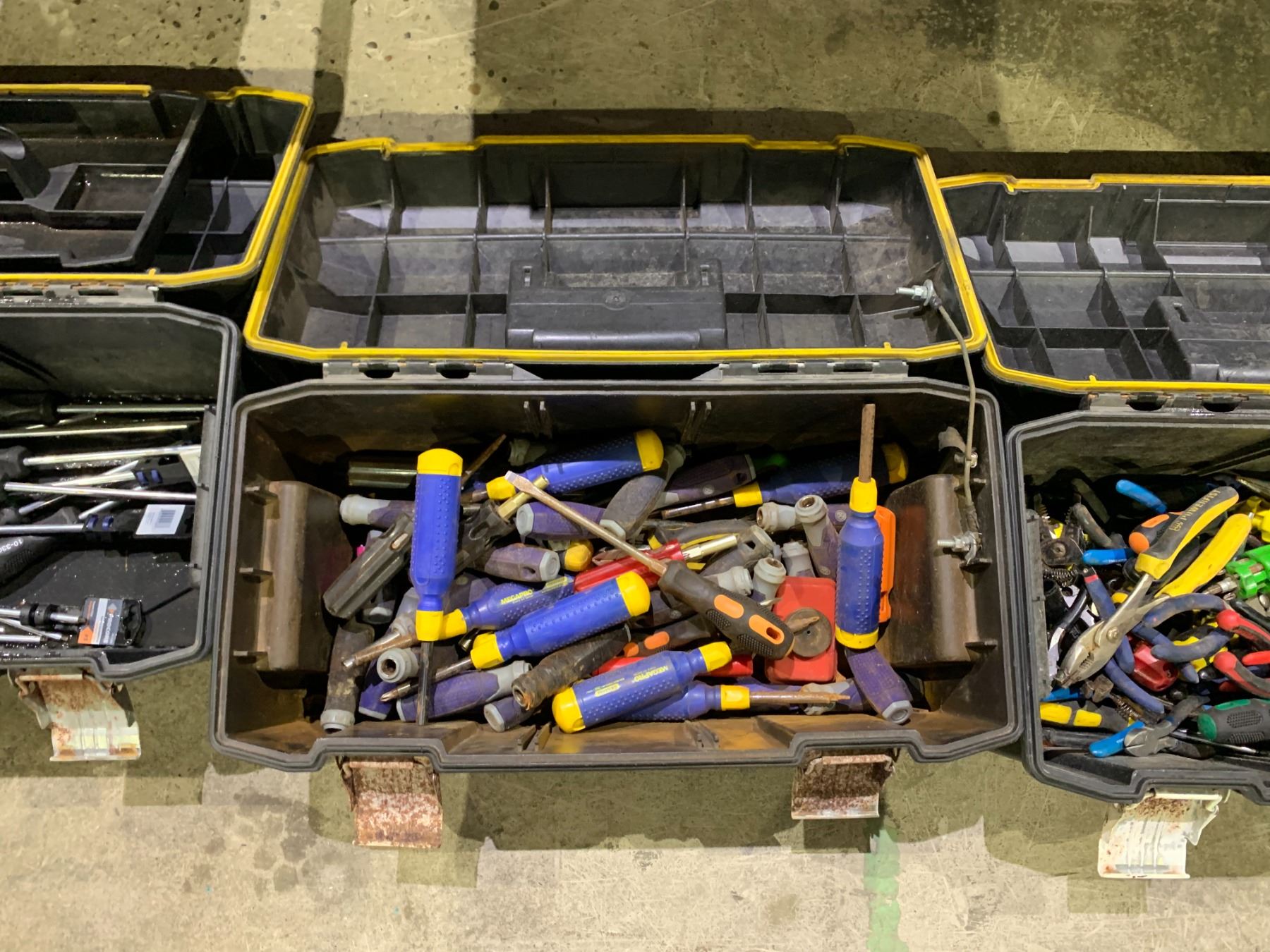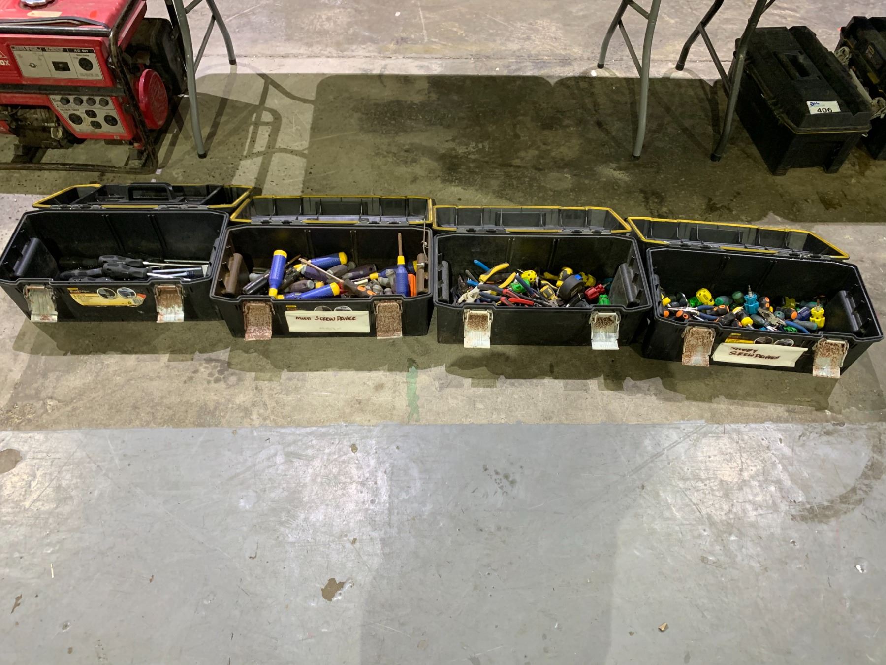4 STANLEY TOOLBOXES WITH ASSORTED TOOL CONTENTS INCLUDING; SCREWDRIVERS, MEASURING TAPES, PLIERS & MORE