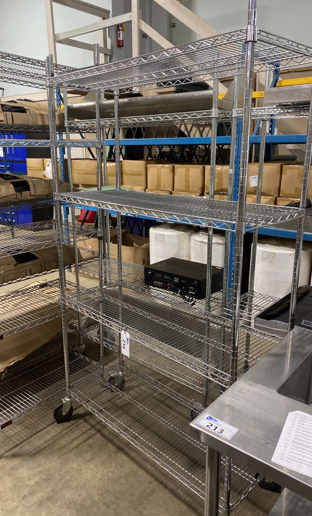 4 TIER CHROME MOBILE METRO STYLE RACK ( APPROX. 4'W X 18"D X 80"H )