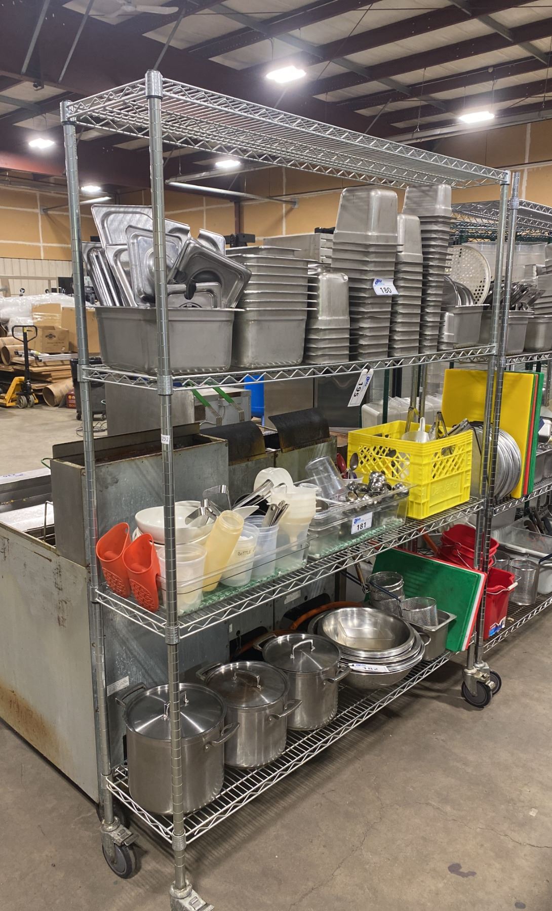4 TIER CHROME MOBILE METRO STYLE RACK ( APPROX. 5'W X 14"D X 80"H ) ** CONTENTS NOT INCLUDED **