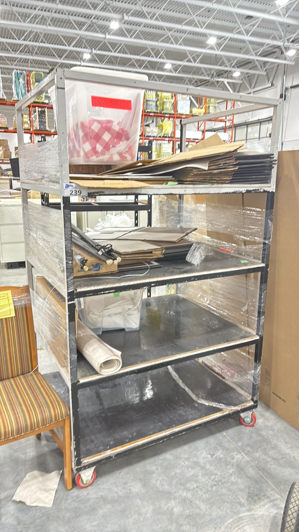 4 TIER PORTABLE METAL PUSH CART WITH CONTENTS 46" X 37" X 75"H