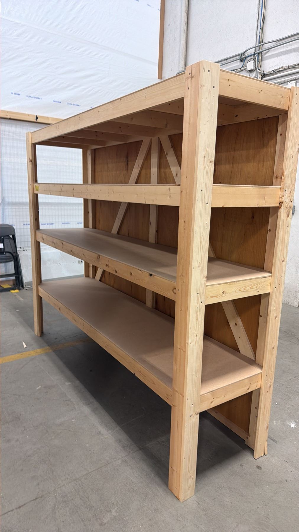 4-TIER WOOD SHELVING UNIT 79" H X 97.5" W X 25" DEEP