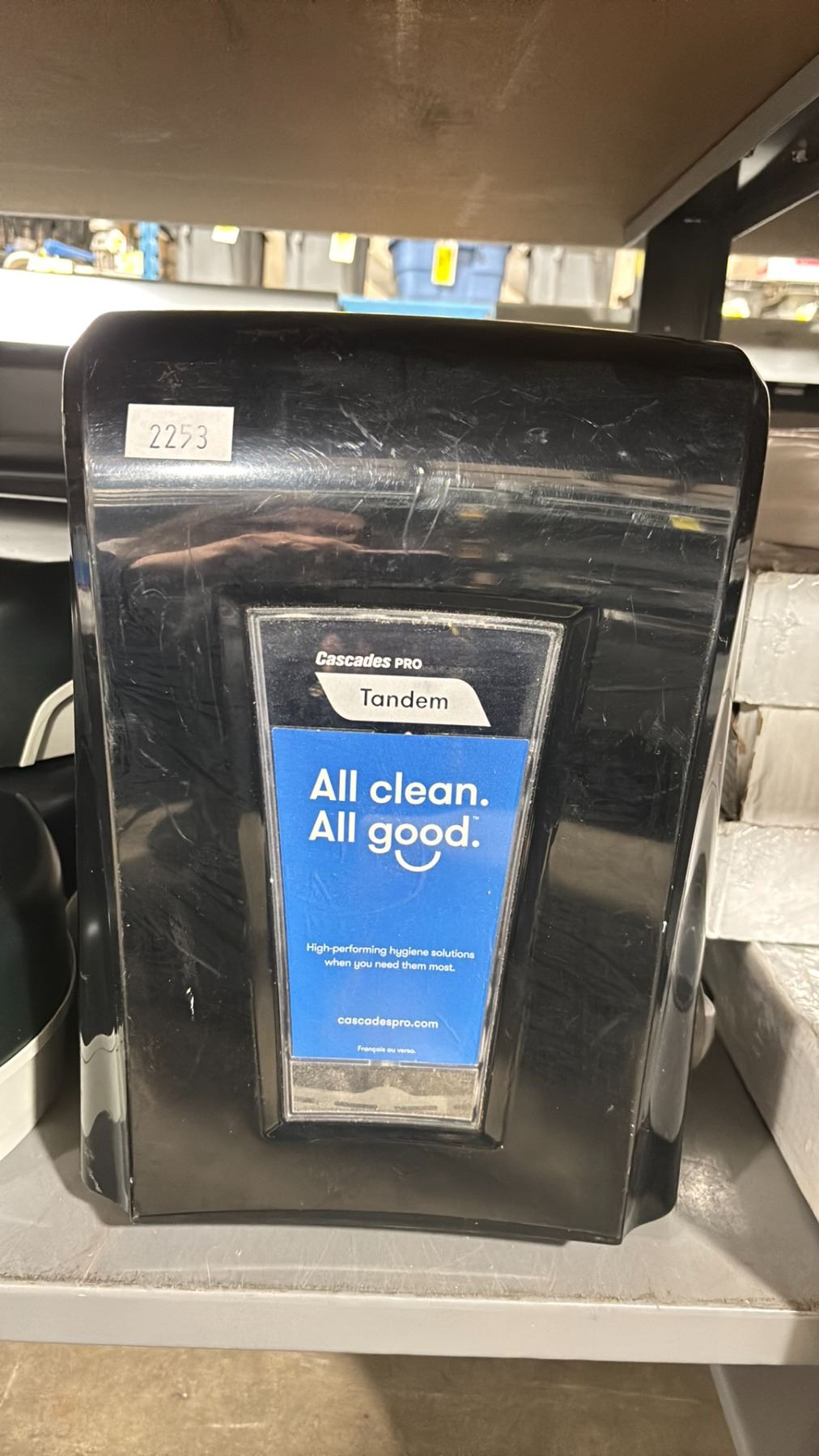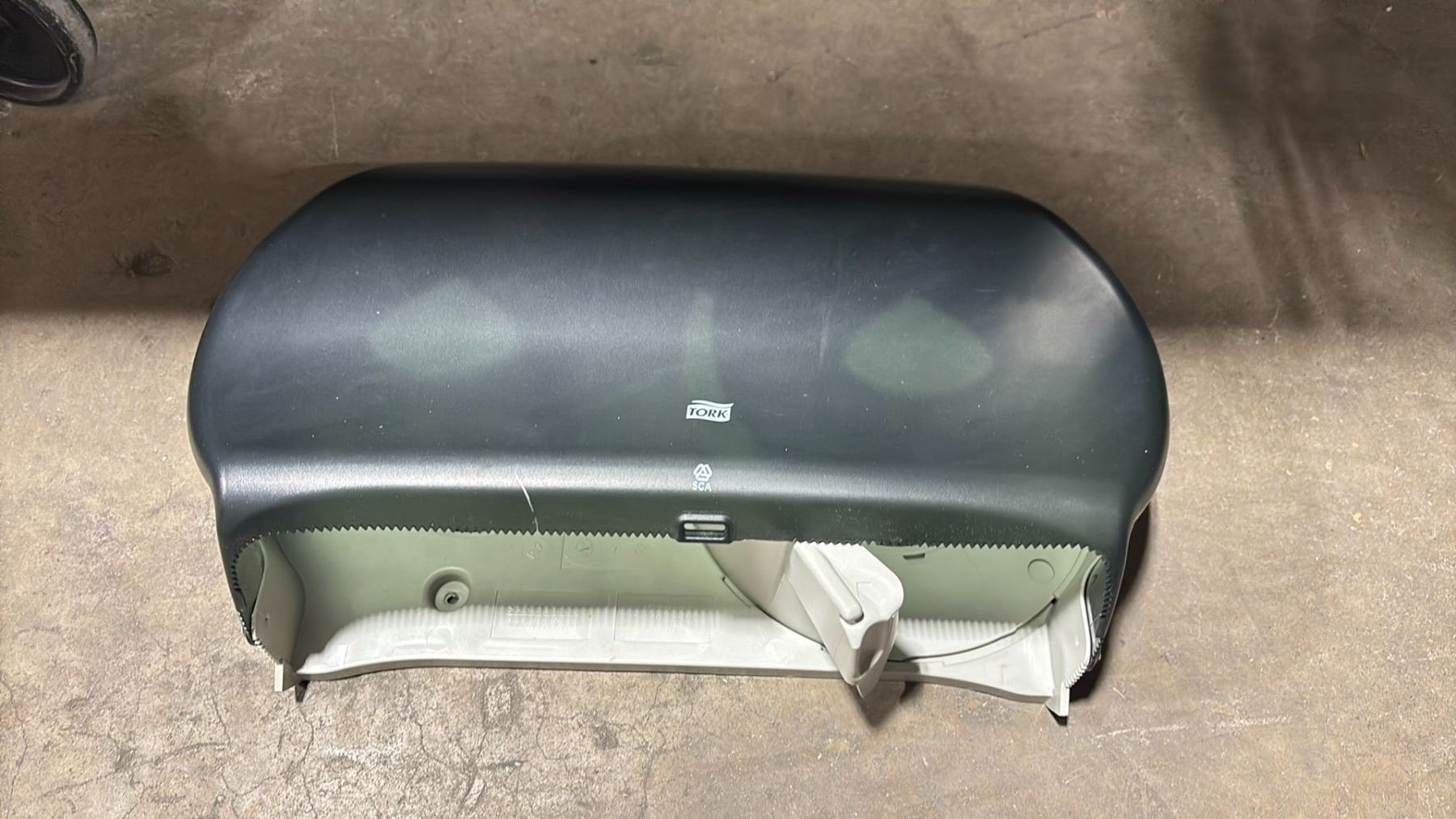 4 - TORK COMMERCIAL WALL MOUNTABLE TOILET PAPER HOLDERS & A CASCADES PRO TANDEM WALL MOUNTABLE PAPER TOWEL DISPENSER