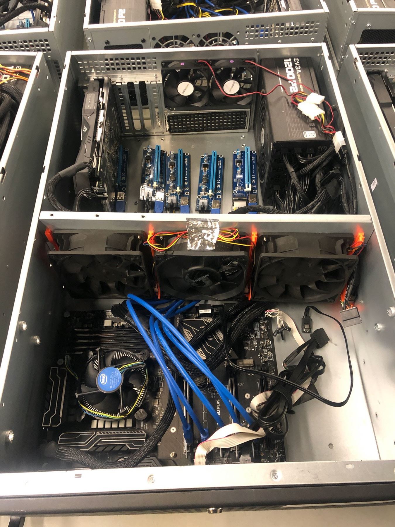 4-U RACK MOUNT COMPUTER SYSTEM WITH Z 270 MAINBOARD, RX 570 GPU, 1200 PLATINUM P.S., 8GB DDR 4 RAM MULTIPLE PCIE USB PORTS