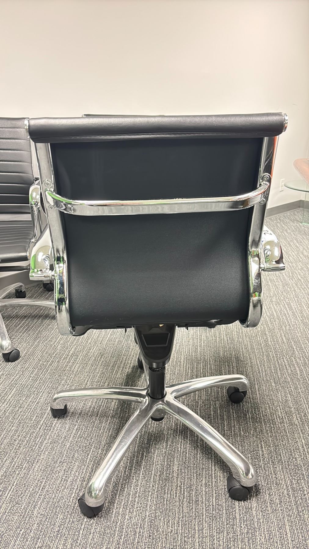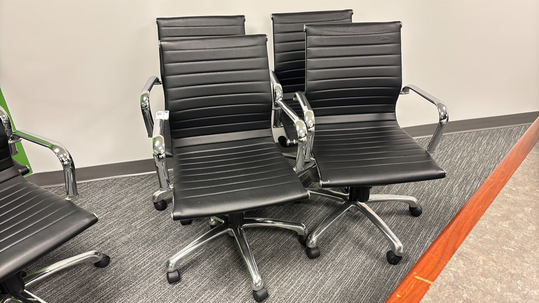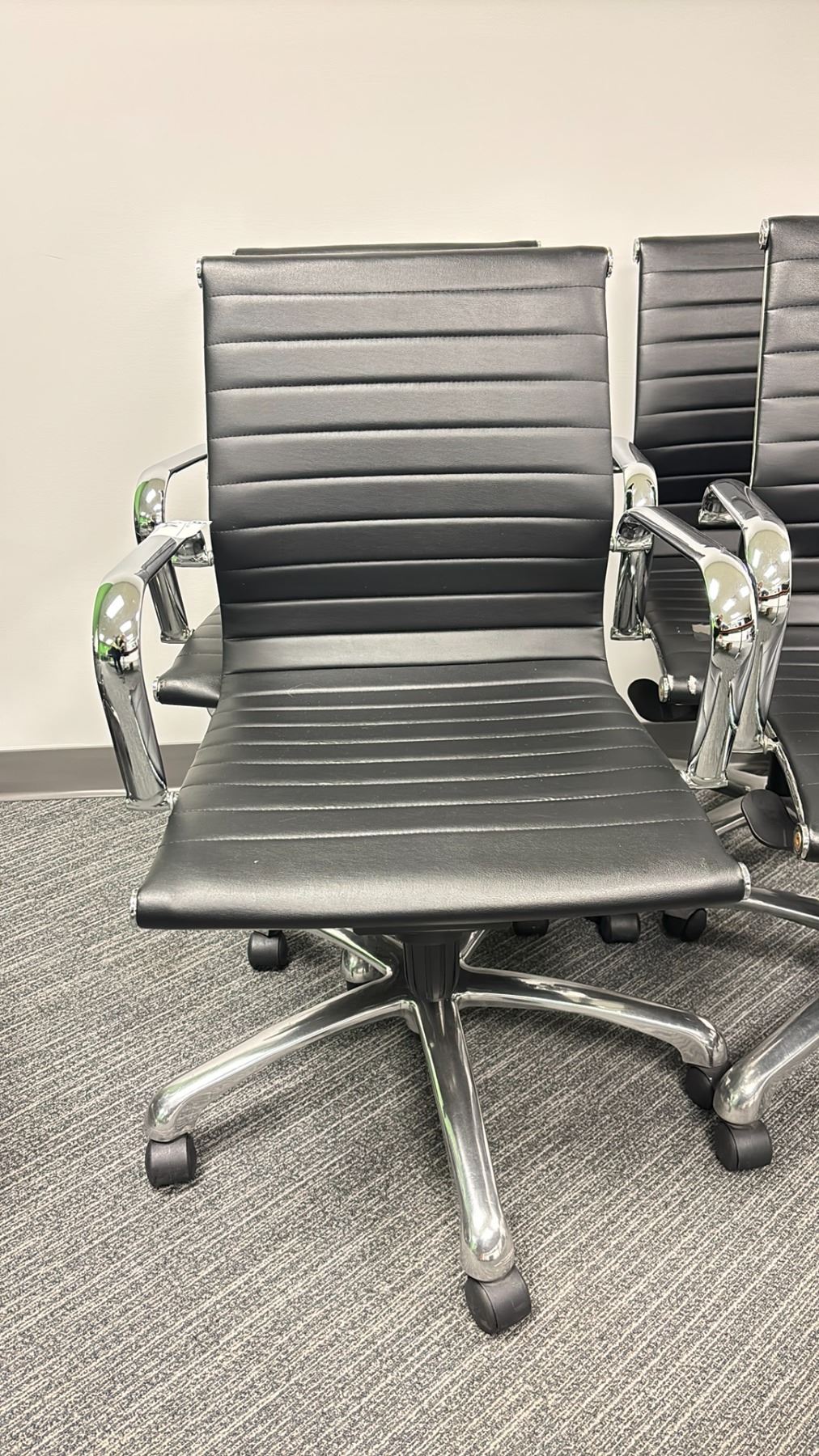 4 ULINE BLACK LEATHER/CHROME FINISH OFFICE CHAIRS
