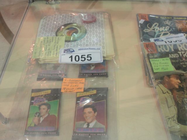 4 UNOPENED PACKAGES OF ELVIS PRESLEY TRADING CARDS AND 11 45 RPM RECORDS