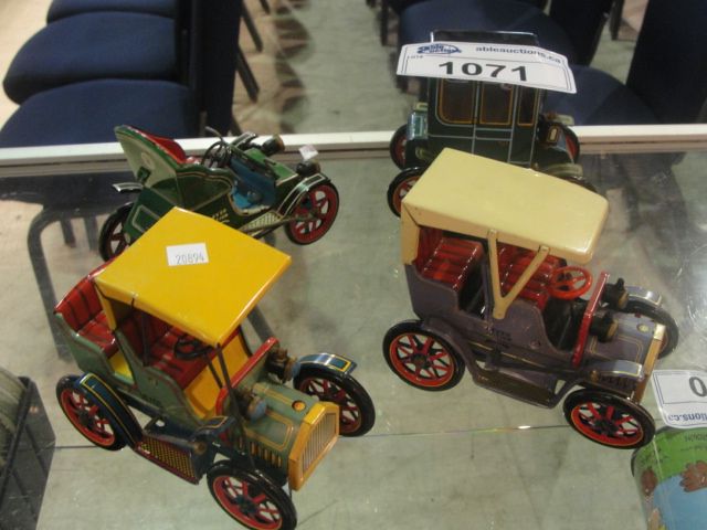 4 VINTAGE COLLECTORS TIN LITHO MECHANICAL TOY CARS