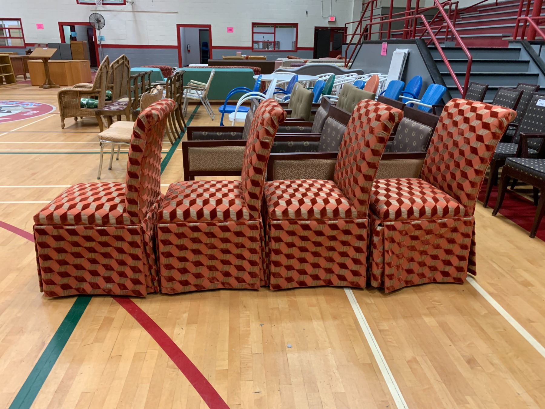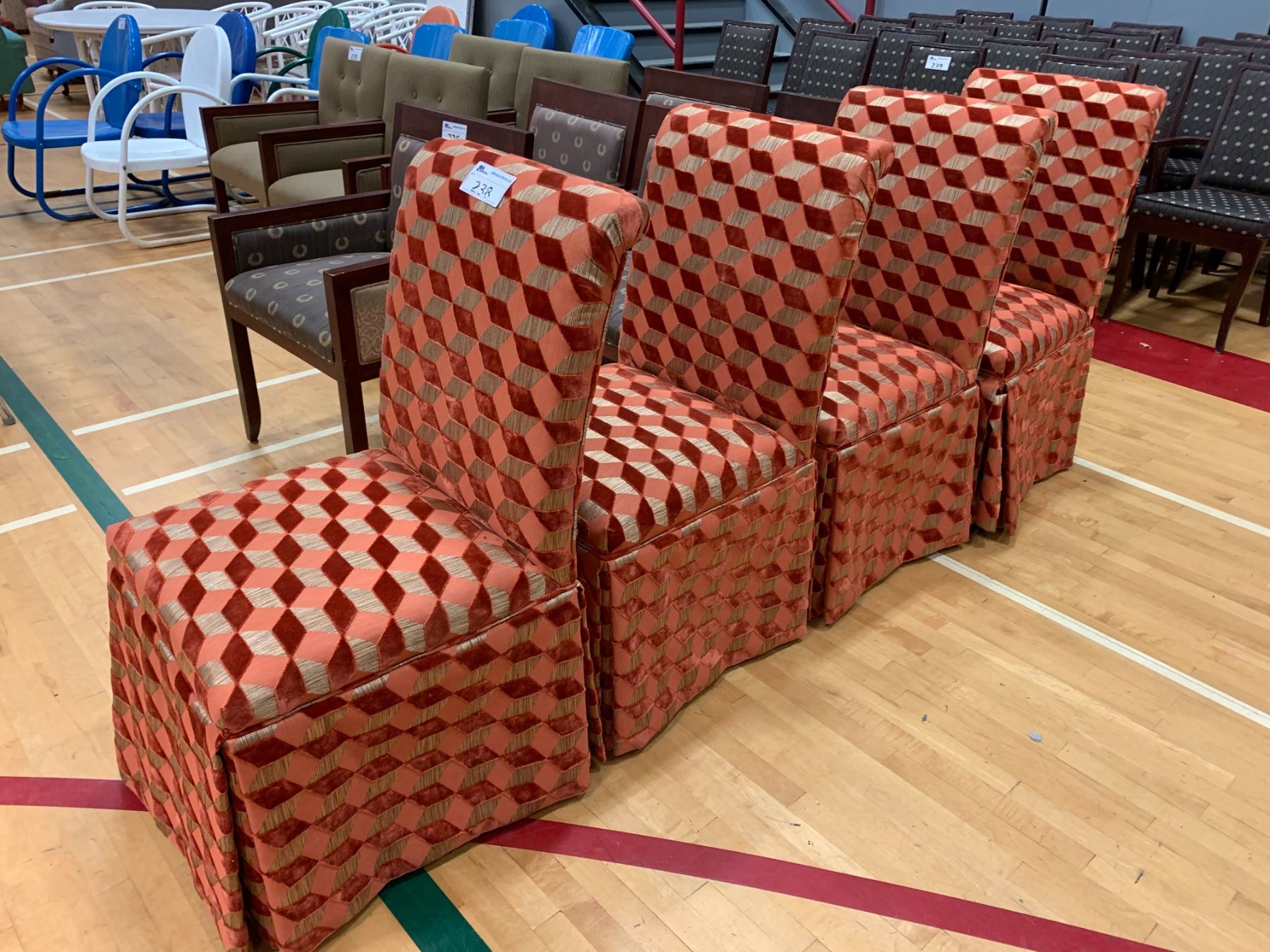 4 VINTAGE SKIRTED WOOD CHAIRS