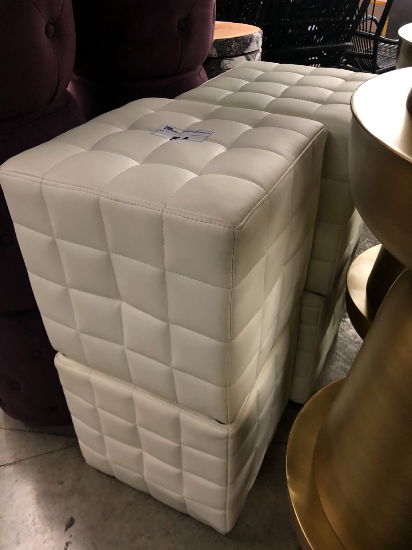 4 WHITE TUFTED CUBE SHAPE STOOLS