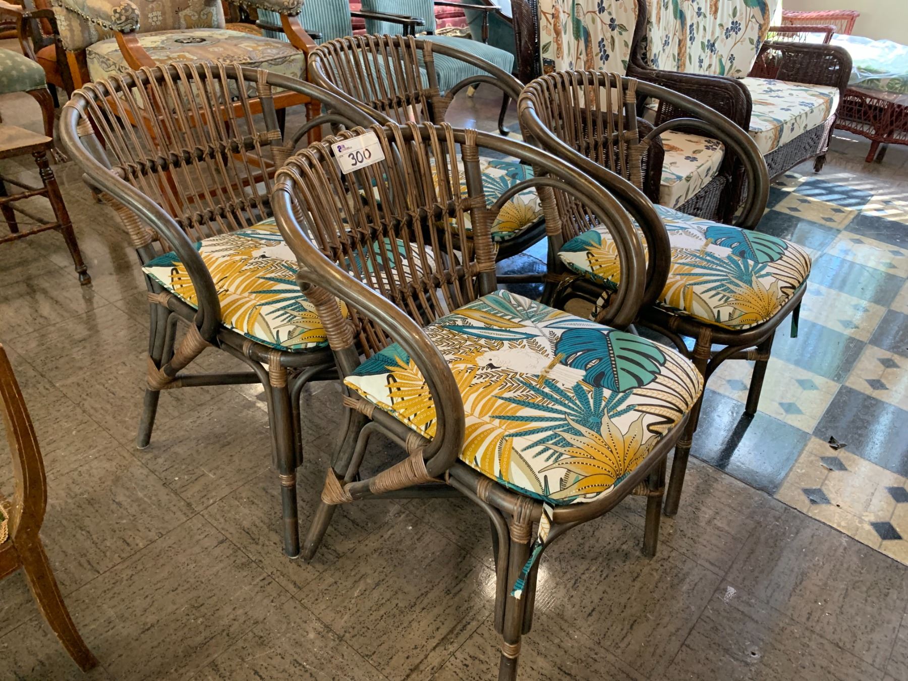 4 WOOD PATIO CHAIRS WITH CUSHIONS