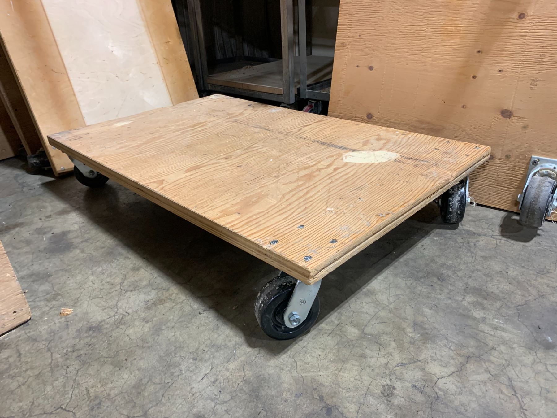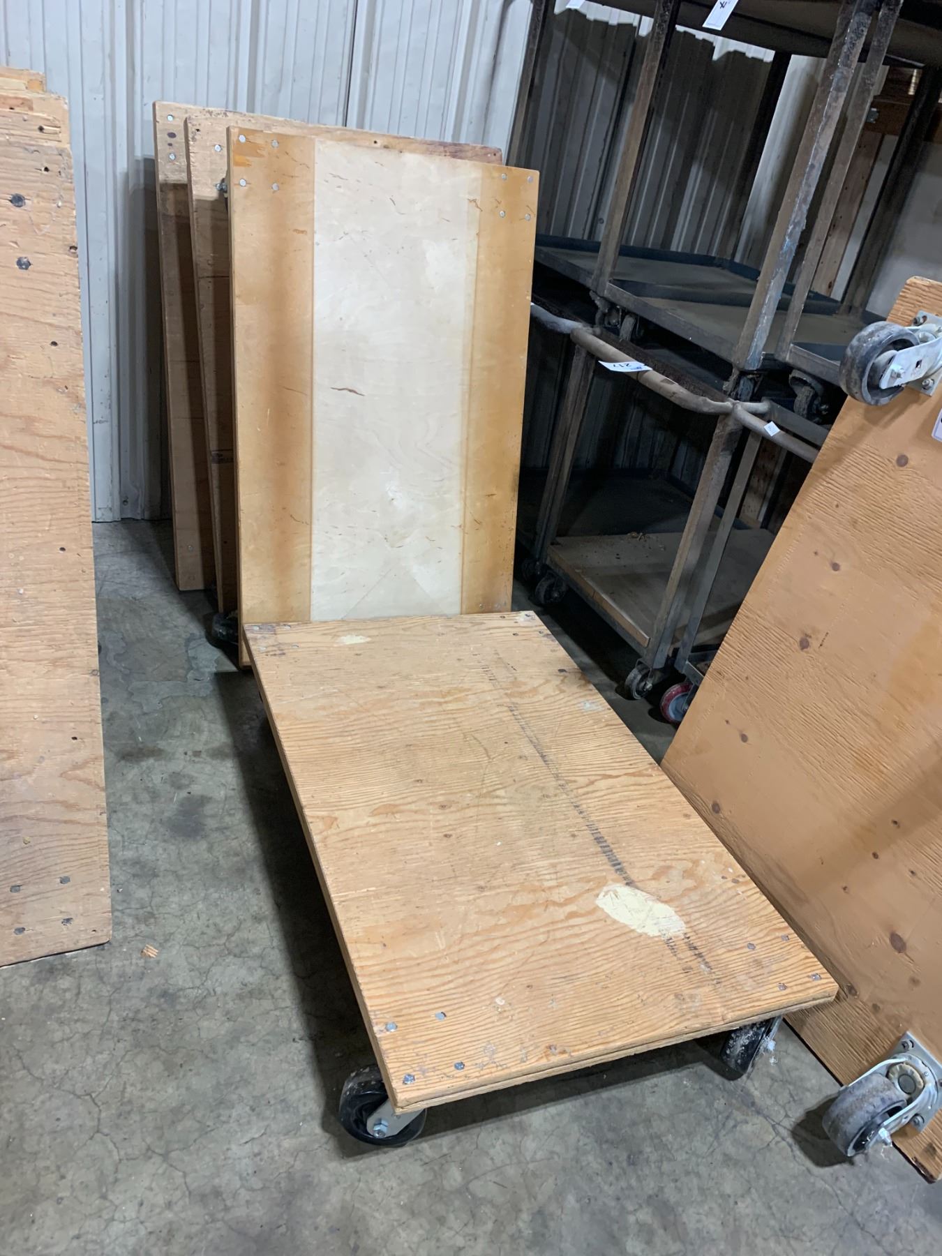 4 WOODEN INDUSTRIAL 4 WHEEL DOLLIES ( APPROXIMATELY 4'L X 32"W )