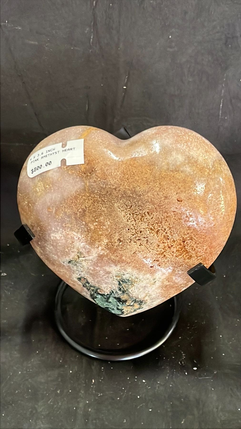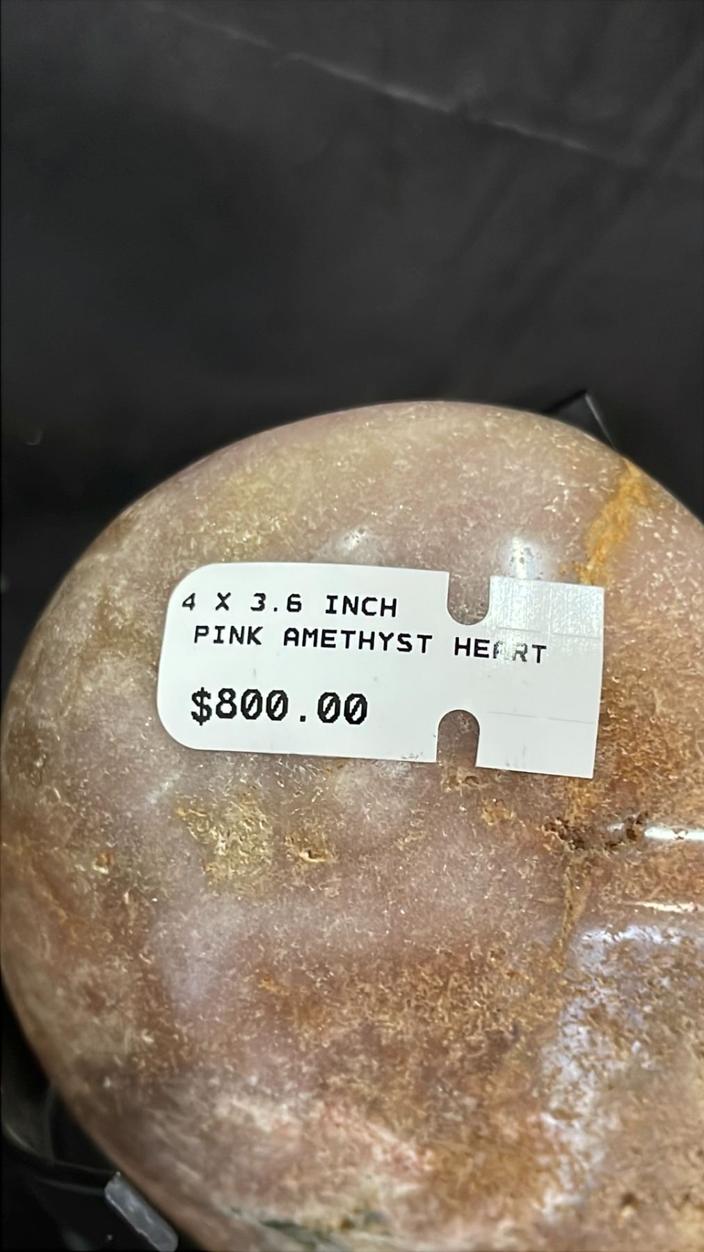 4" X 3.6" PINK AMETHYST HEART LISTED RETAIL $800