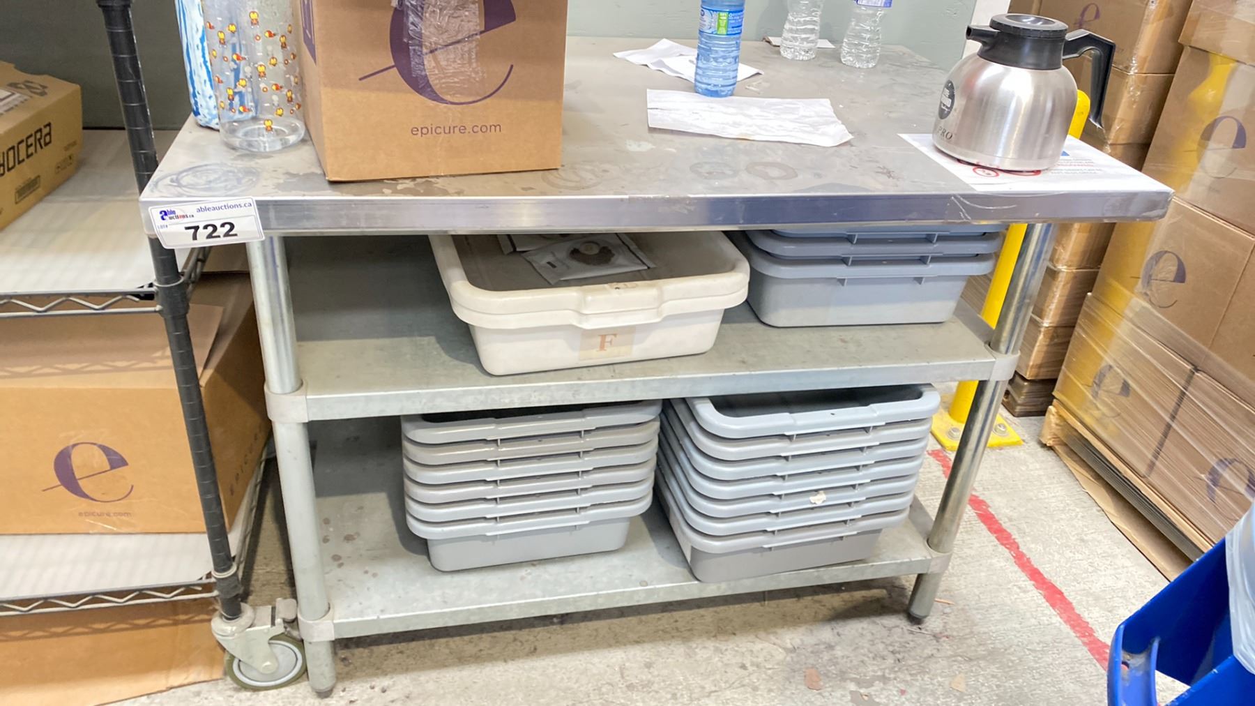 4' X 30" STAINLESS TABLE WITH APPROX 15 BUS PANS