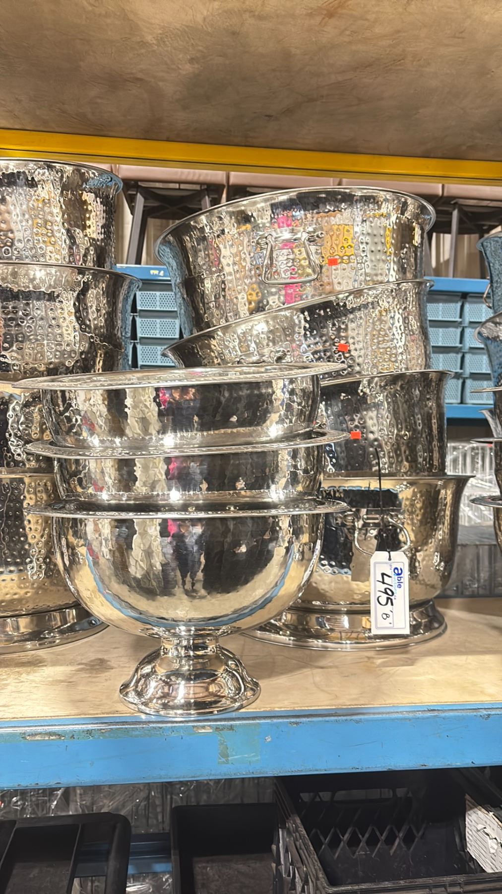 4- XL HAMMERED STAINLESS STEEL DOUBLE WALL ICE MERCHANDISERS & 3 MEDIUM HAMMERED STAINLESS STEEL DOUBLE WALL ICE MERCHANDISERS/ BUCKETS