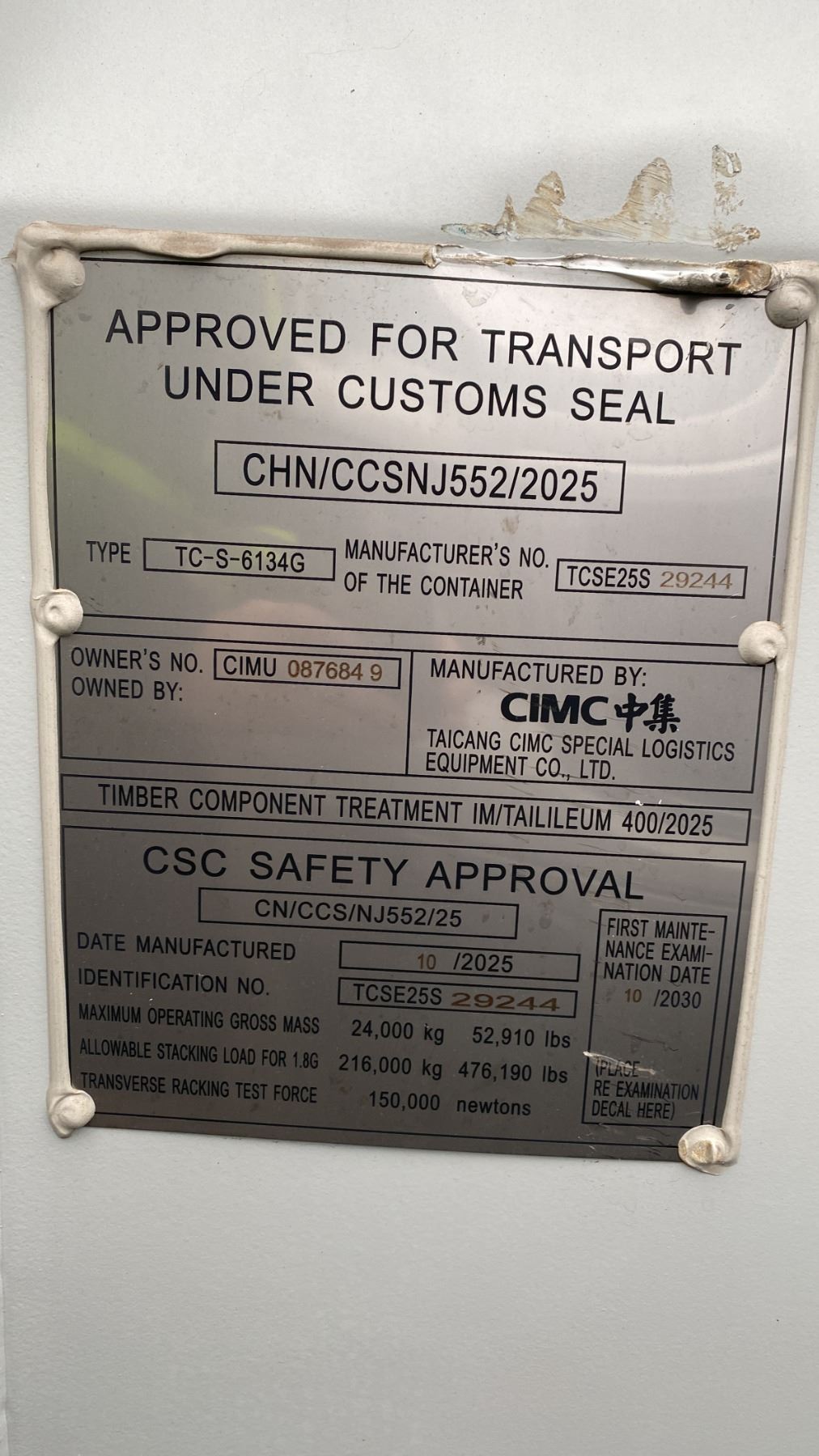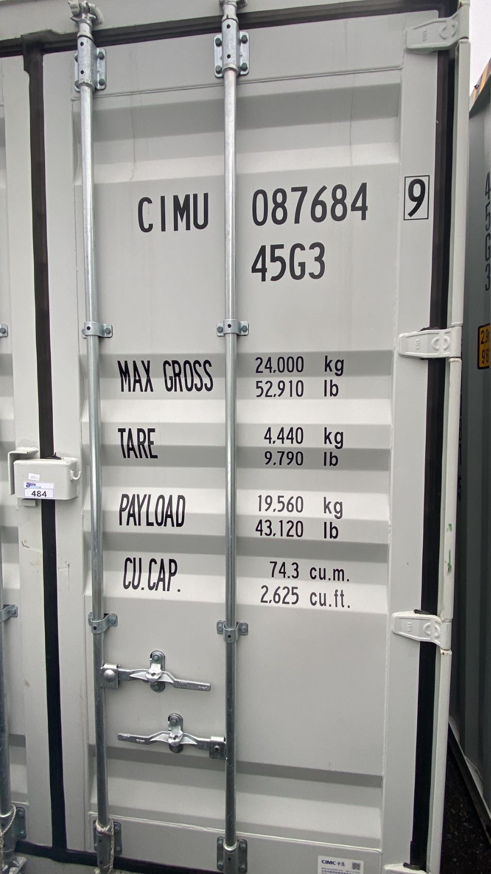 40' GREY HC, 52,910 MAX CAPACITY INDUSTRIAL TRANSPORT CONTAINER WITH 4 DUAL SWING SIDE DOORS DUAL SWING REAR DOOR WITH CAM LOCKS 40'L X 96"W X 114"H, CONTAINER #CIMU0876849 *REQUIRES HIAB CRANE OR TILT DECK TRAILER TO TRANSPORT* *LAST DAY REMOVAL*