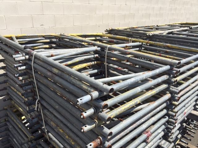 42 - 3' SCAFFOLDING FRAMES WITH 12 - 10' WORK PLATFORMS AND 1 BUNDLE OF 11' CROSSBARS