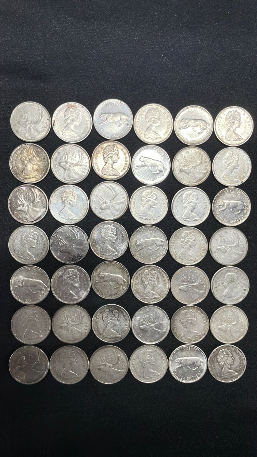 (42) ASSORTED CANADIAN $0.25 (25 CENTS) SILVER COINS