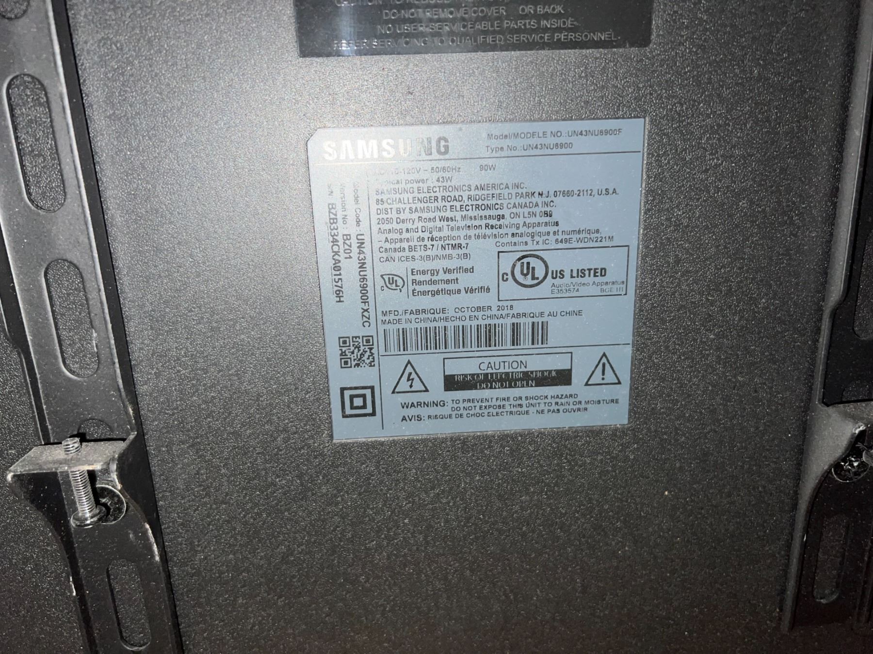 42" SAMSUNG TV. MODEL UN43NU6900F. WITH REMOTE. NO STAND