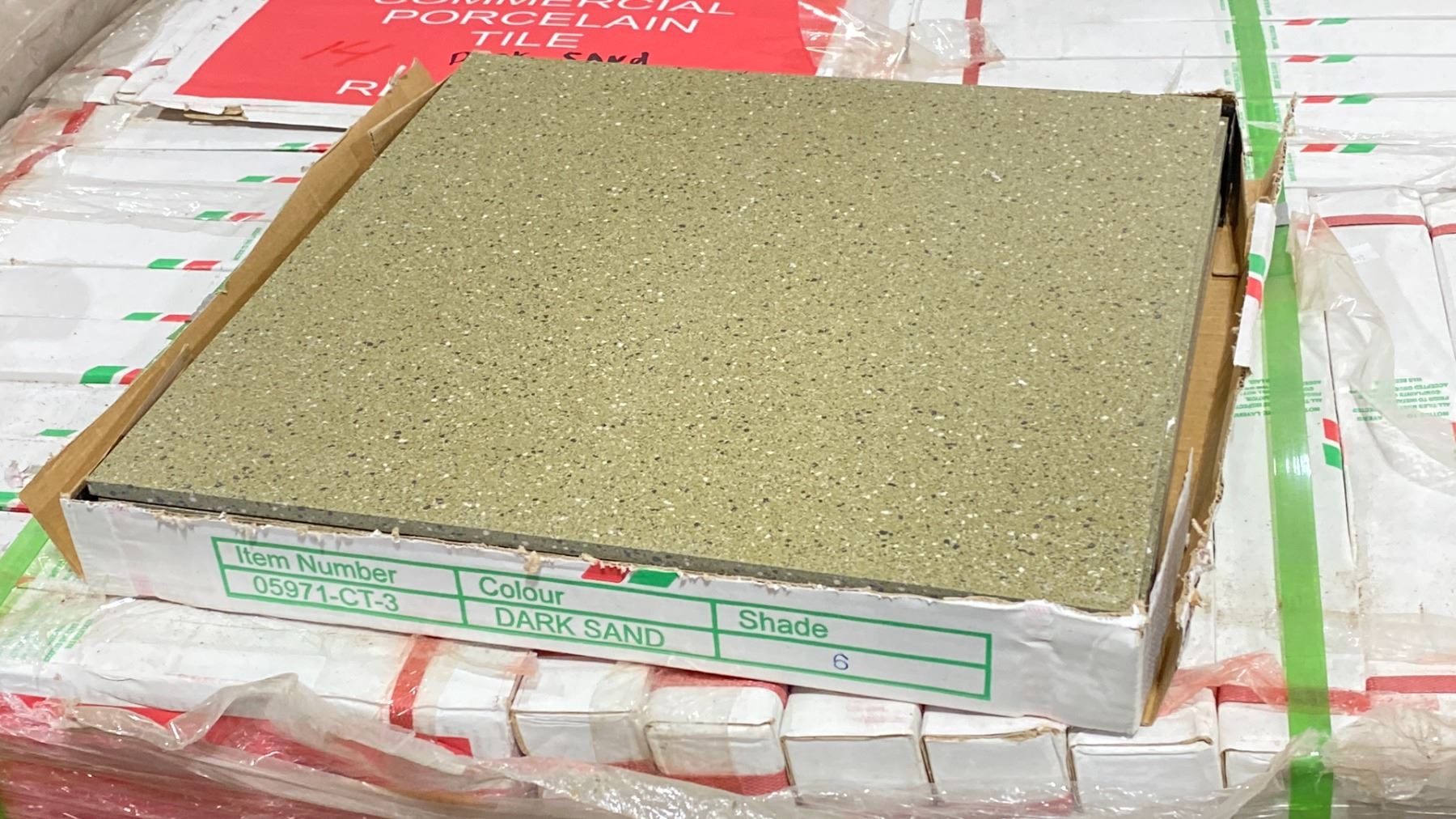 432SQ FT OF DARK SAND 18"X18" COMMERCIAL PORCELAIN FLOOR TILE 10.8SQ FT, 5 PCS PER BOX, 1.012 SQ METERS PER BOX 40 BOXES, 432 SQ FT TOTAL *MUST TAKE ALL ON PALLET*