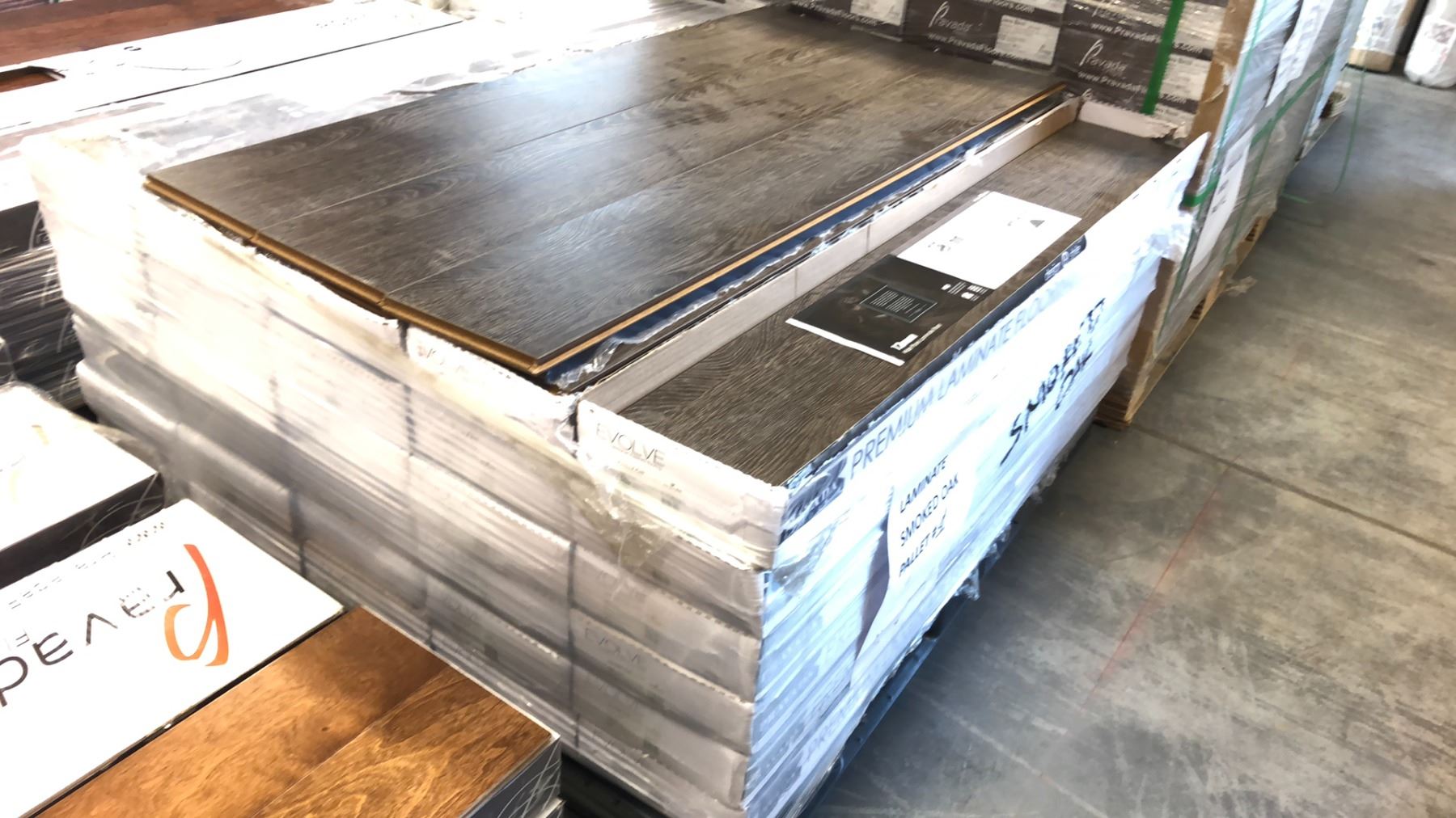 454.2 SQFT OF PRAVADA FLOORS SMOKED OAK 30 BOXES WIRE BRUSHED FINISH PREMIUMS LAMINATE FLOORING 15.14 SQFT PER BOX 12MM X 193MM X 1215MM *MUST TAKE ALL ON PALLET*