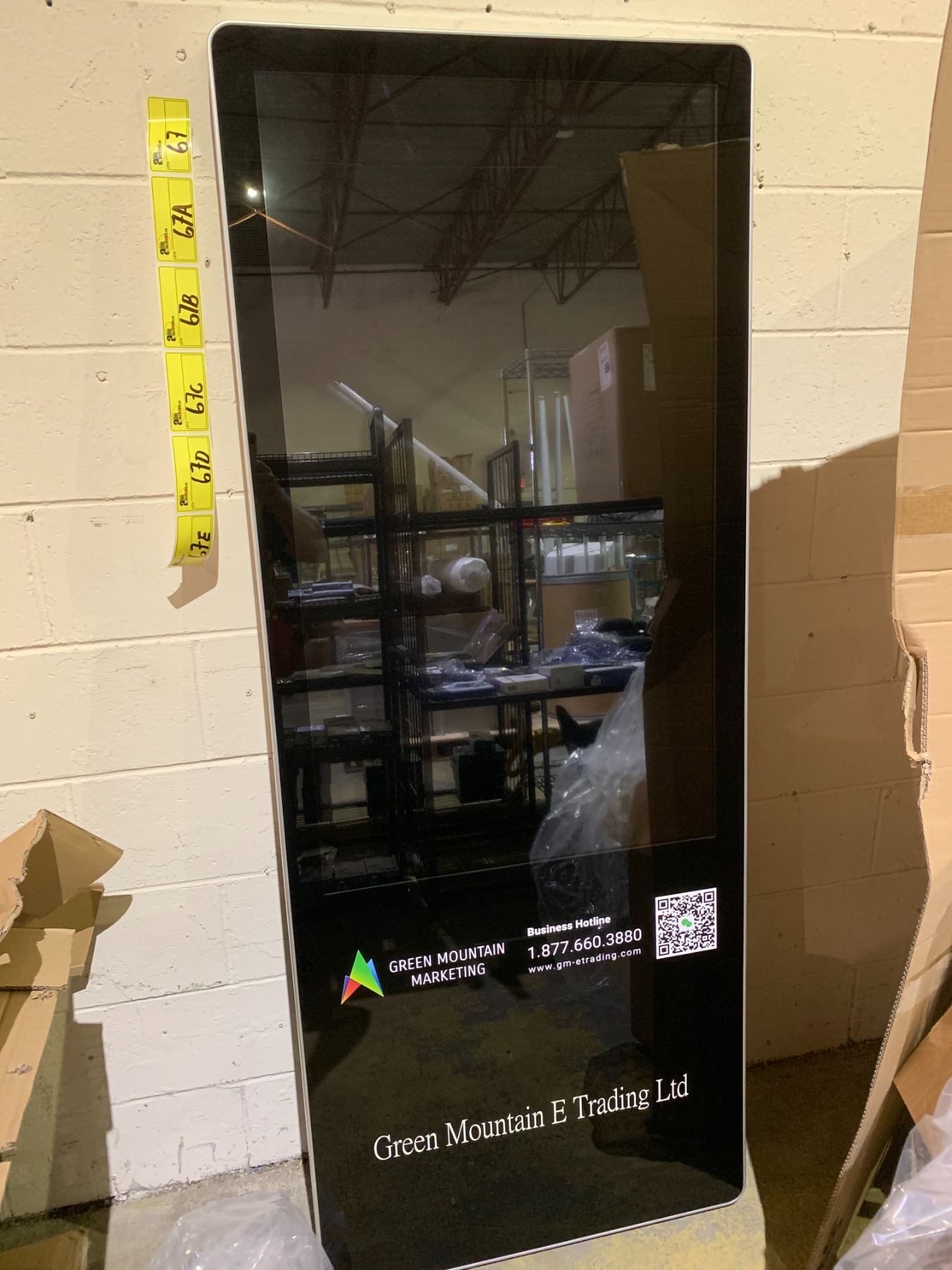 49" FLOOR STANDING ADVERTISING DISPLAY RUN BY ANDROID SOFTWARE MODEL #TYL-HGM490LA(N)04- NO POWER CORD, NO STAND, NO REMOTE NO ANTENNA