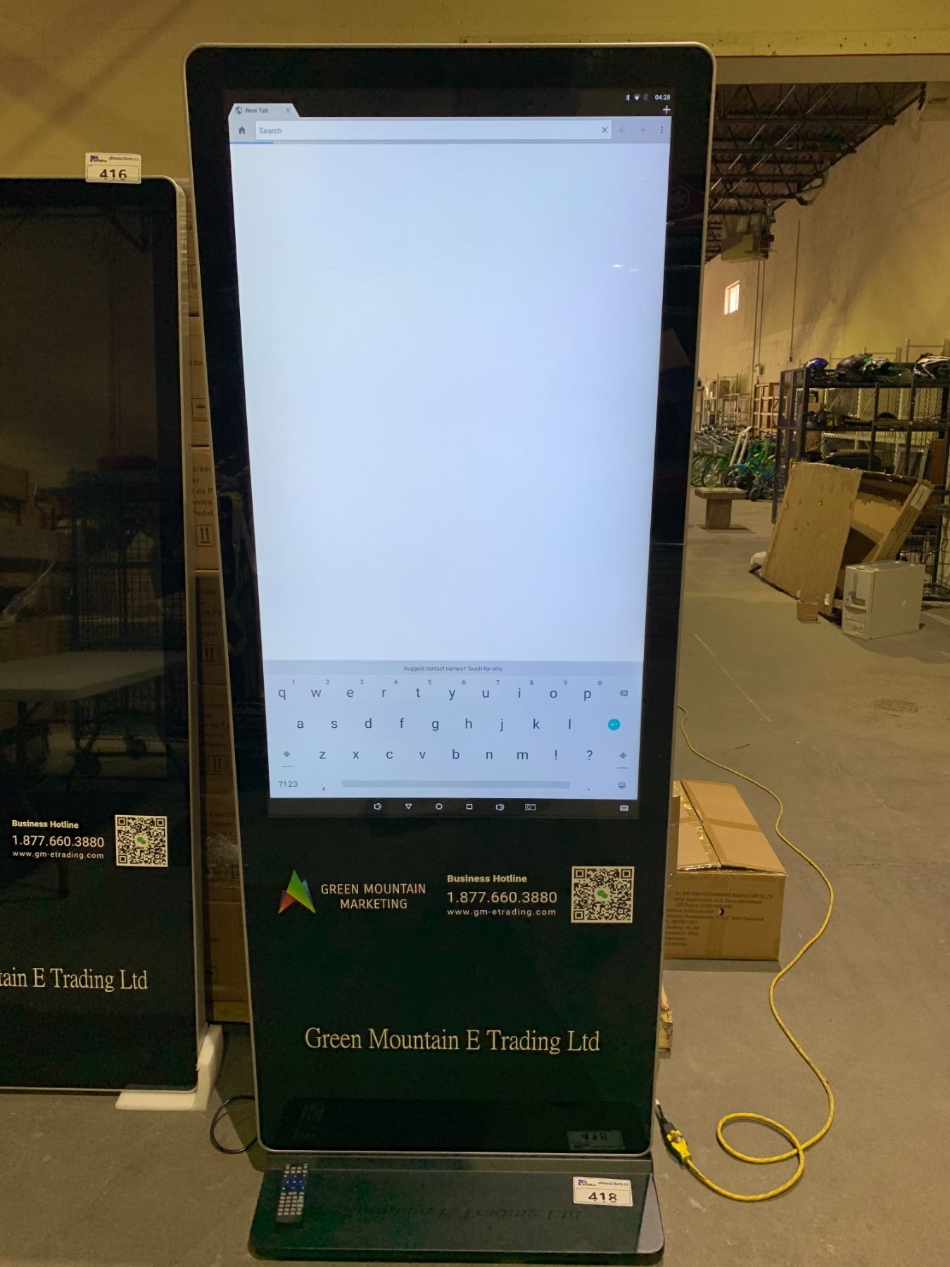49  FLOOR STANDING ADVERTISING DISPLAY RUN BY ANDROID SOFTWARE MODEL #TYL-HGM490LA(N)04 WITH STAND