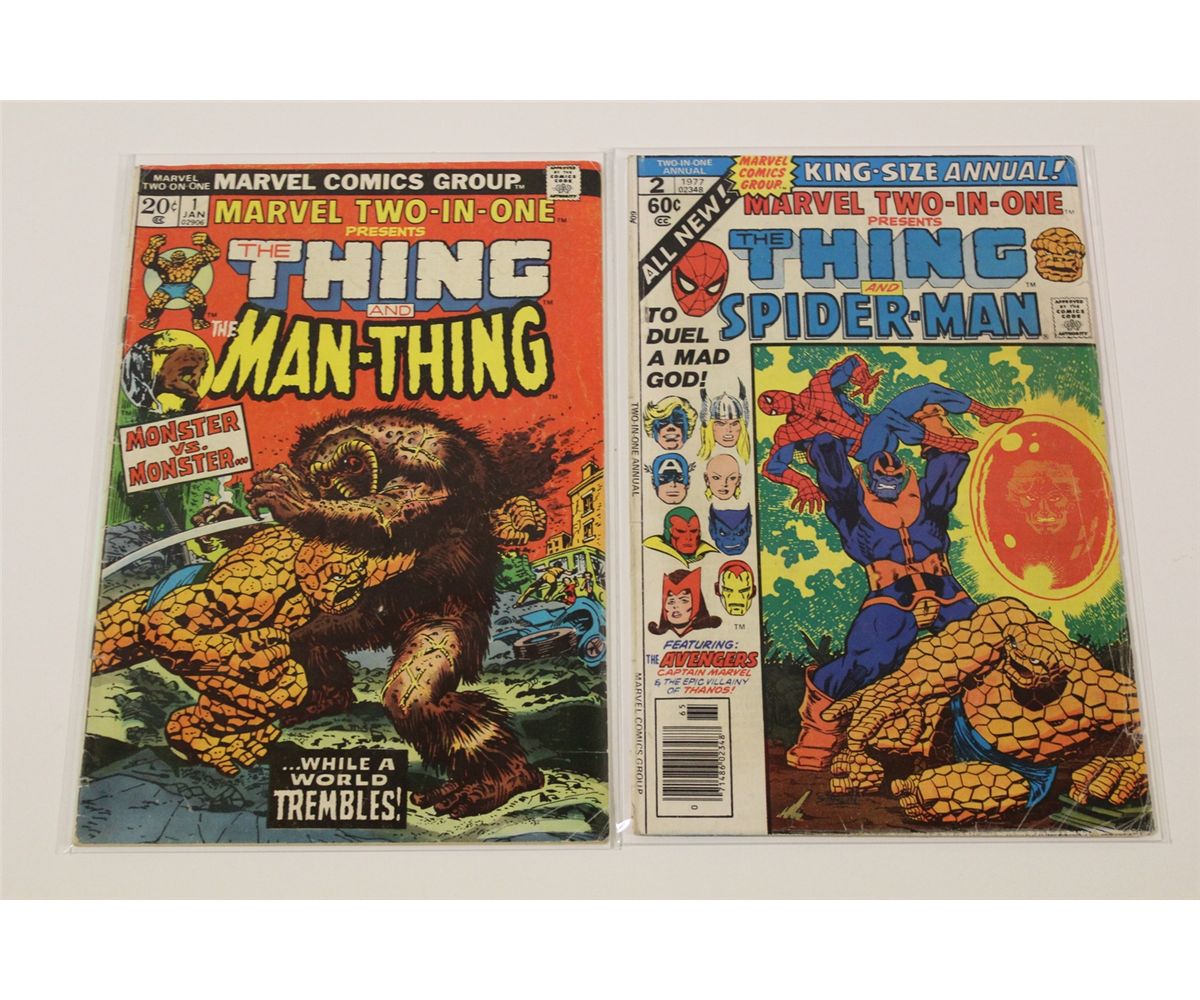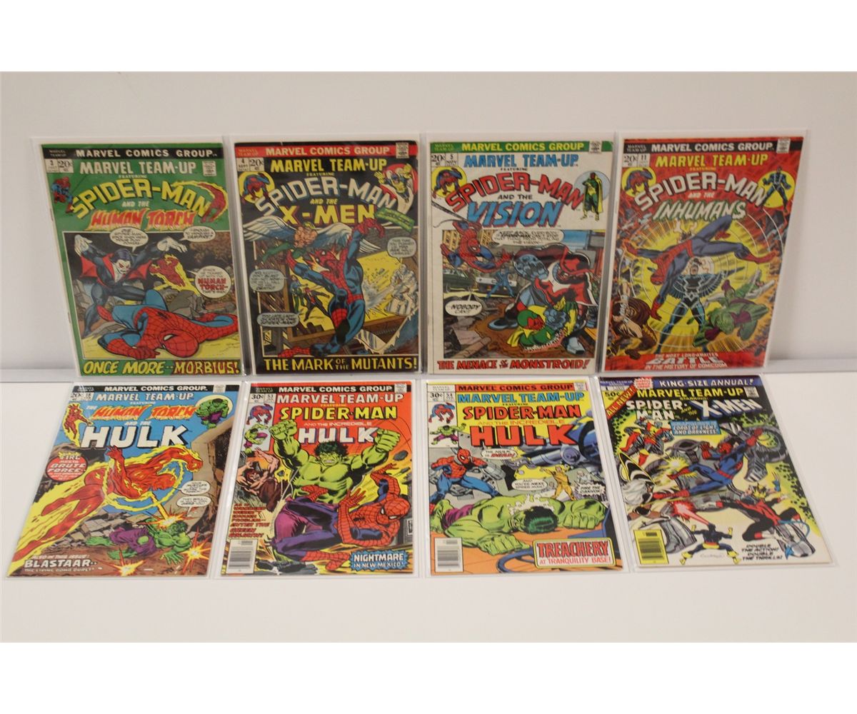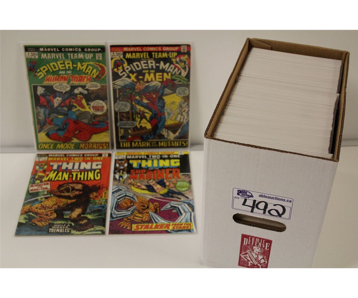 492 MARVEL TEAM-UP & TWO-IN ONE LARGE RUNS (1972-84) INCLUDES 61 ISSUES OF TEAM-UP BETWEEN #3-148 + ANNUAL #1-5 & 44 ISSUES OF TWO-IN-ONE BETWEEN #1-93 + ANNUAL #1-7, WITH KEY X-MEN ISSUES OF TEAM-UP #4, 53 & ANNUAL #1 & TWO-IN-ONE ANNUAL #2 - 2ND DEATH OF THANOS. 105 BOOKS TOTAL, NO DUPLICATES, MIXED GRADES WITH MANY SHARP, HIGHER GRADE COPIES, LOTS OF GUIDE VALUE HERE, NICE RUNS!