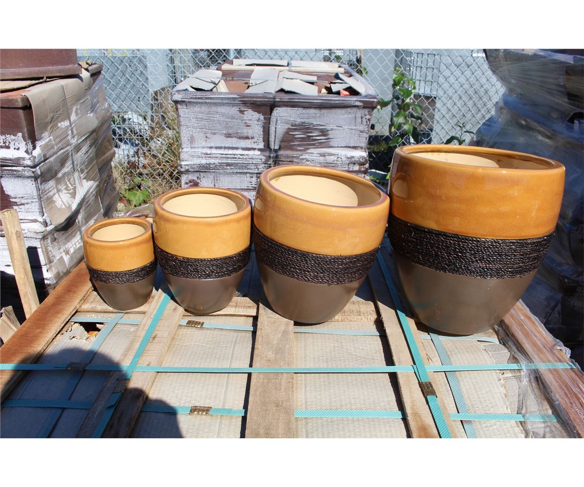 4PC 2TONE WITH ROPE CORD DECORATIVE ACCENT CERAMIC PLANTER SET