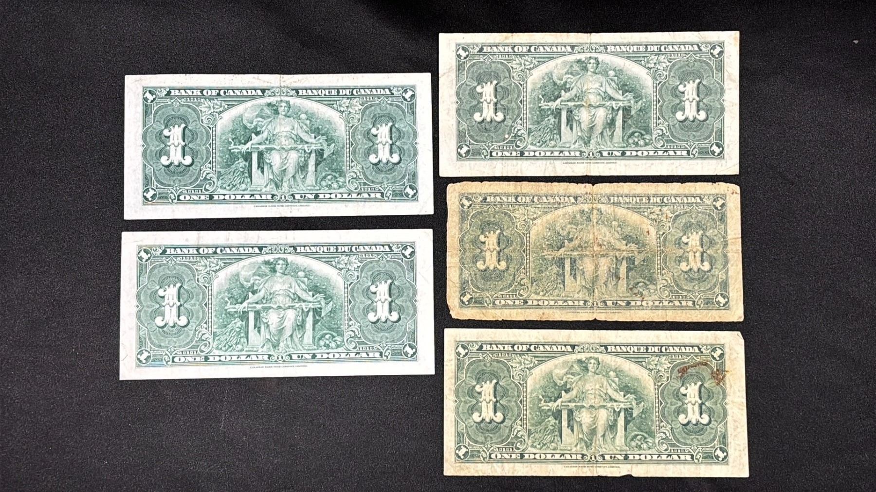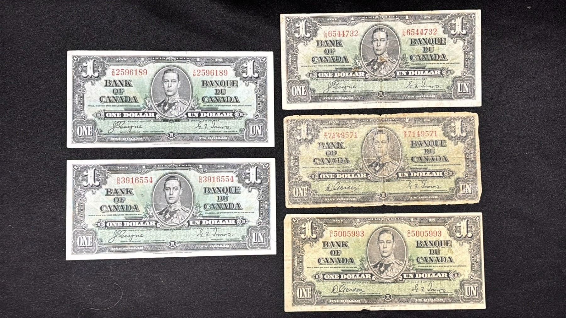 (5) 1937 CANADIAN $1 BANK NOTES